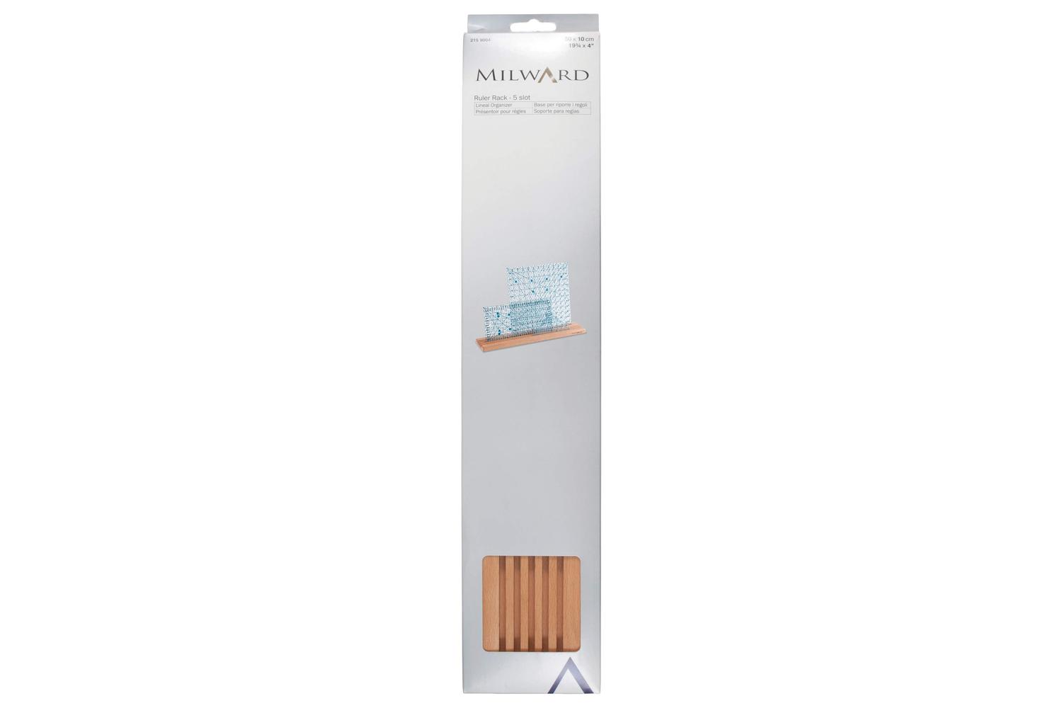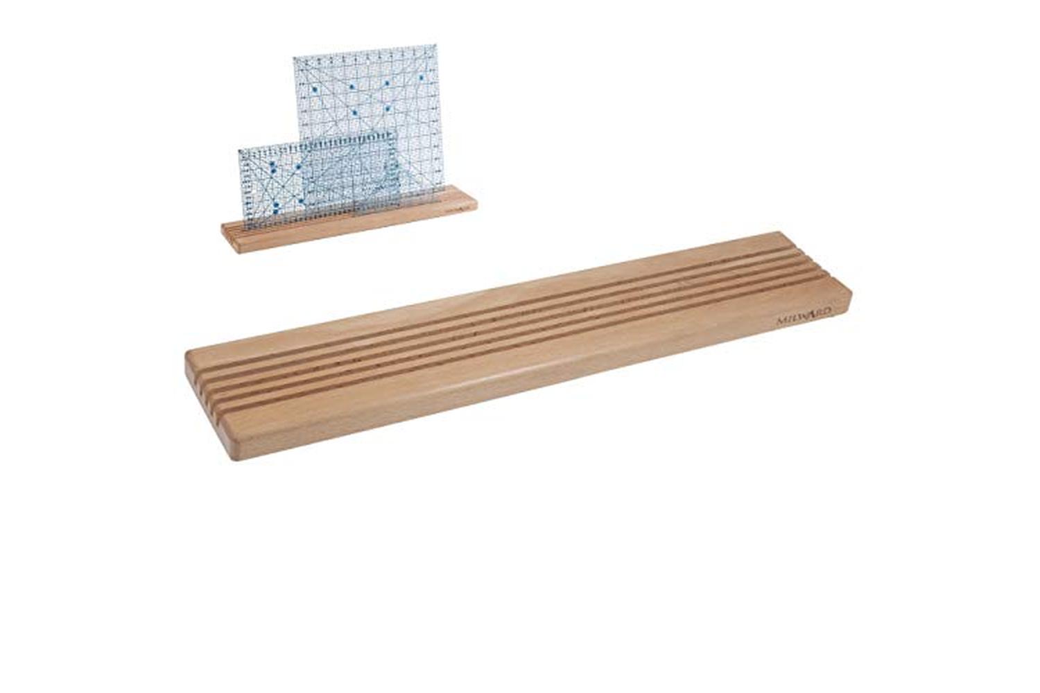 Description: An ideal solution for safely storing quilting rulers or templates, making them accessible and less prone to damage. Made from beautiful and durable beech wood. Laser etched Milward logo. Item size: (d/w) 10 x 50cm.