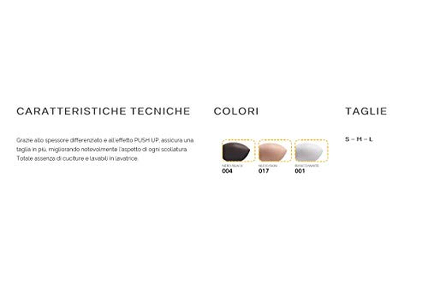 When fitted into the brassiere they have a 'push-up' effect which improves the bustline. Differentiated thicknesses inside for a more natural look, they are also completely seamless. Washable by hand.
