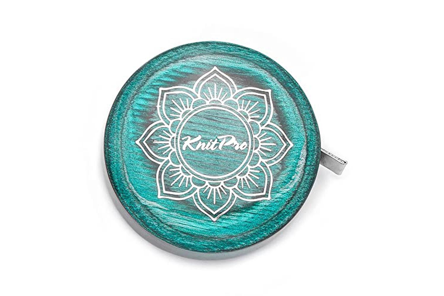 The teal coloured wooden case tape measure is the ideal companion to the Mindful Collection's needles and accessories. The serene lotus design on the front is a reminder of the collection's beauty. The 150cm (60in) tape measure is smoothly retracted by pressing the centre button. Environmentally friendly packaging, using natural materials.