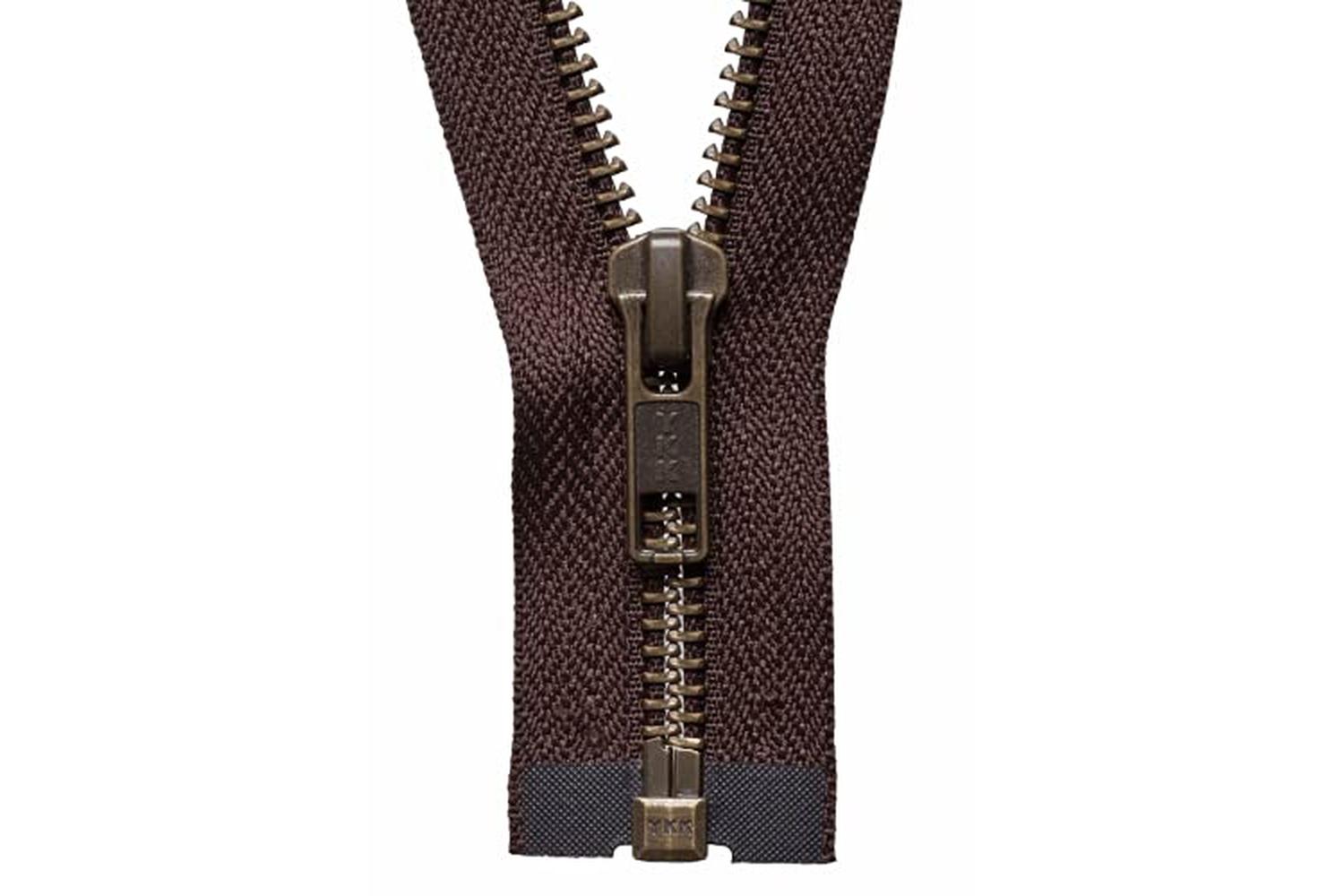 Description: Strong metal tooth open end zip, for use with heavier weight fabrics including leather and suede.