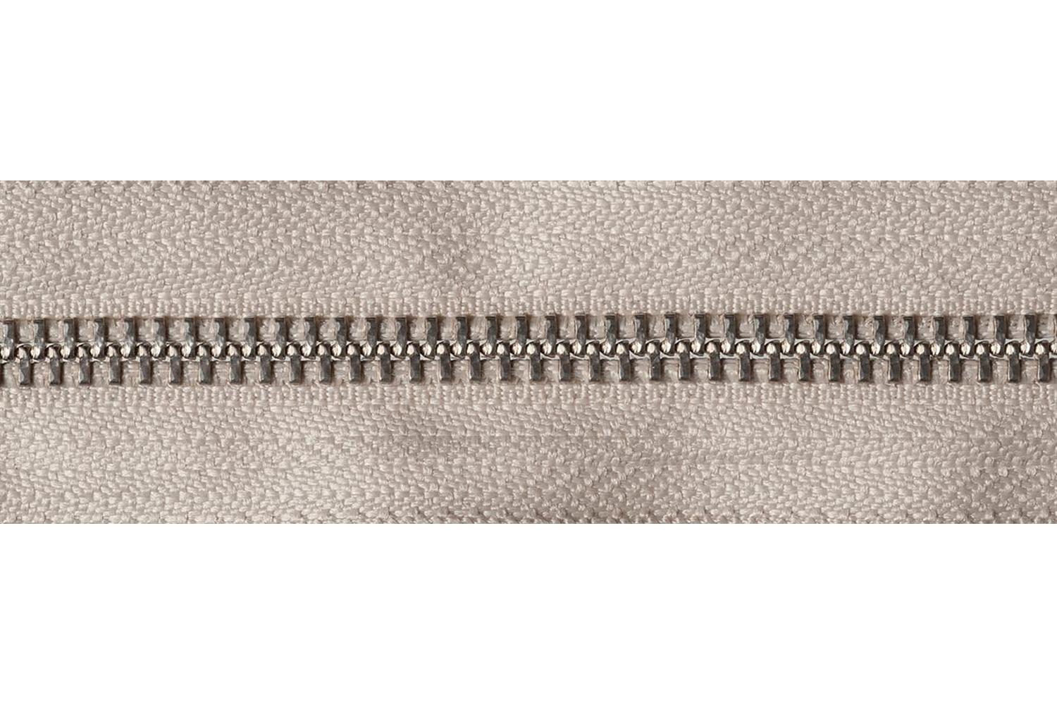 Description: Strong metal tooth zip for use with heavier weight fabrics including leather and suede.