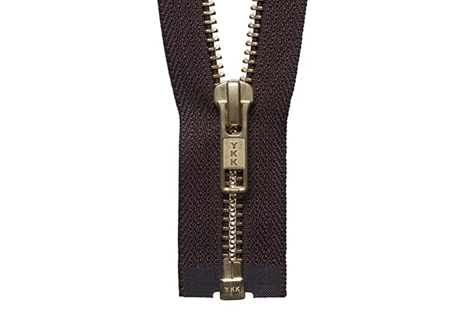 Metal medium weight open end brass zip. Size: 30cm/11.81in.