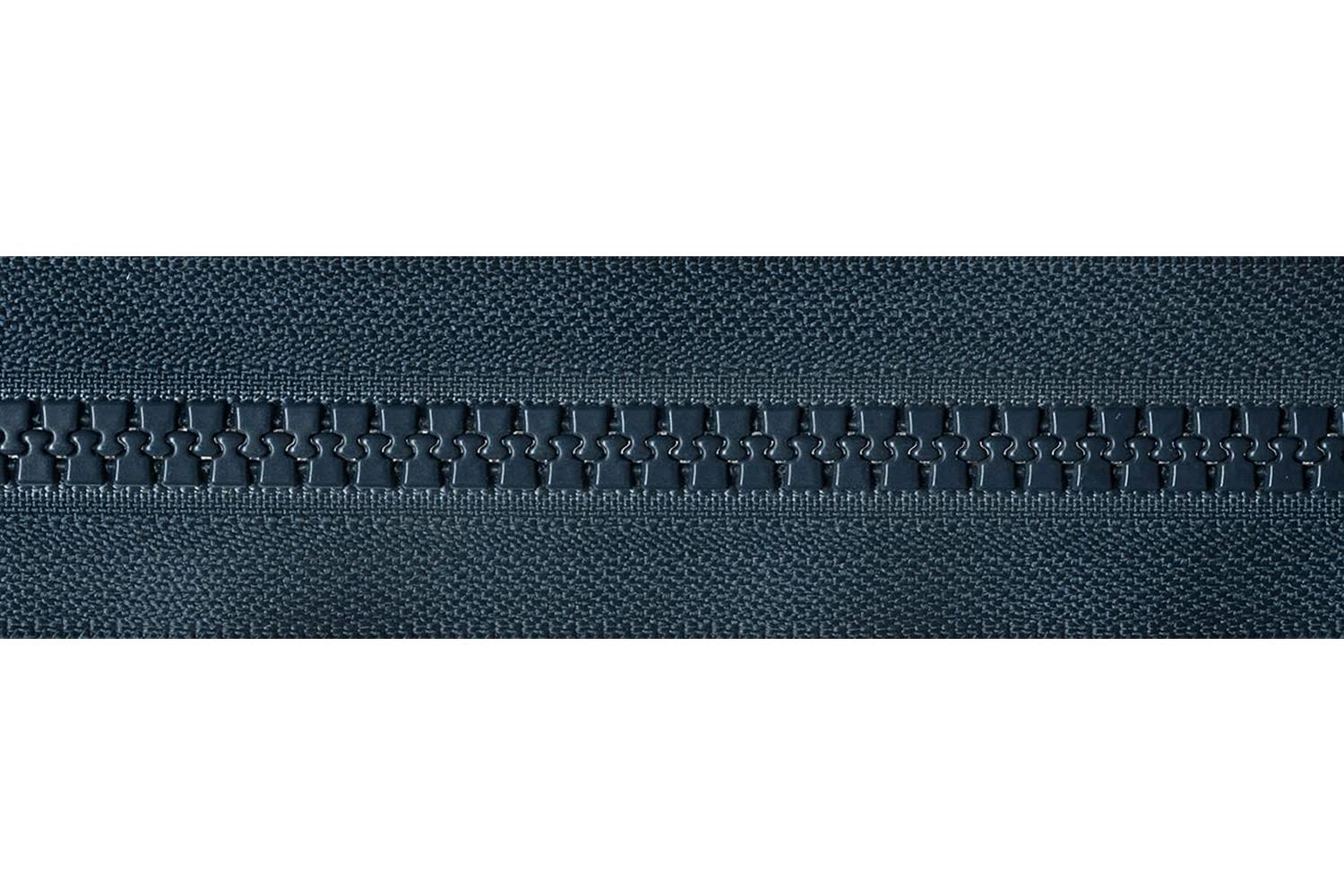 Heavy-weight moulded tooth zip with moveable bottom slider. Allows zip to be opened from both the top and bottom.