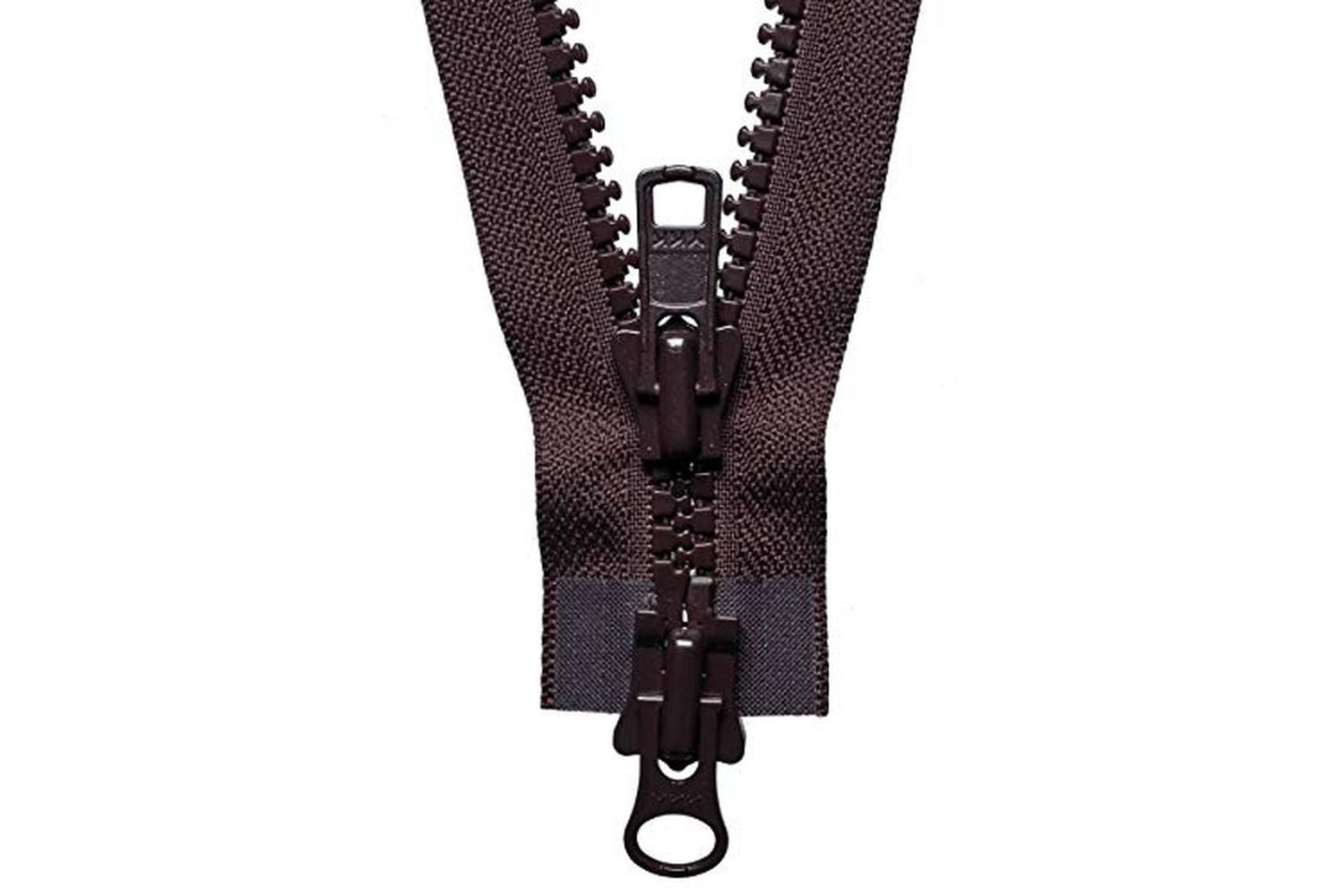 Heavy-weight moulded tooth zip with moveable bottom slider. Allows zip to be opened from both the top and bottom. Size: 71cm/27.95in.