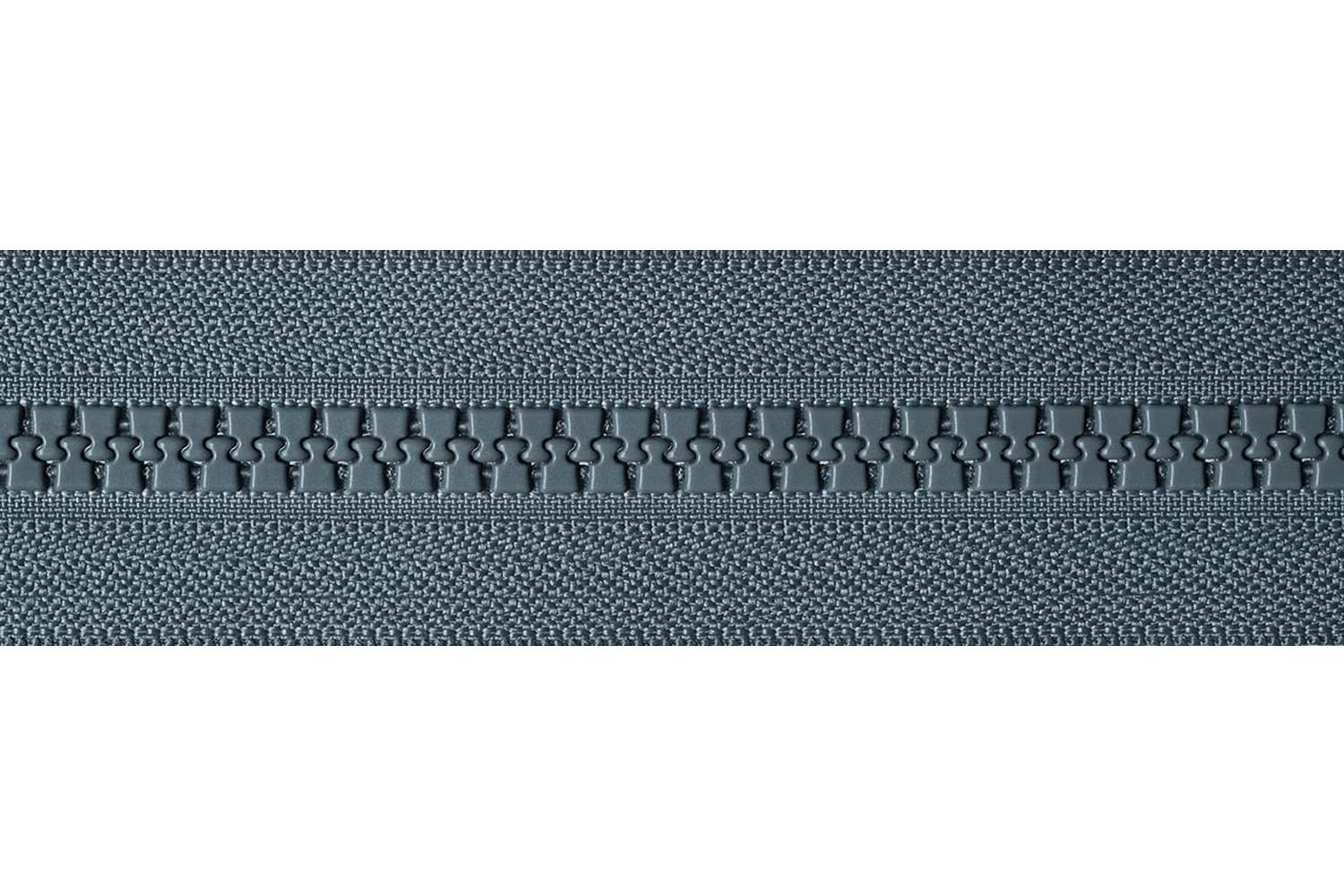 Description: Heavy-weight moulded tooth zip with moveable bottom slider. Allows zip to be opened from both the top and bottom.