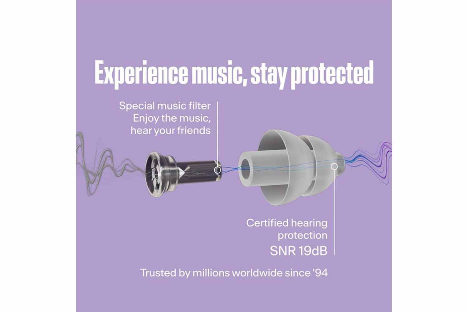 The special music filter allows you to hear the music and chat with friends while reducing harmful noise by 19 dB.