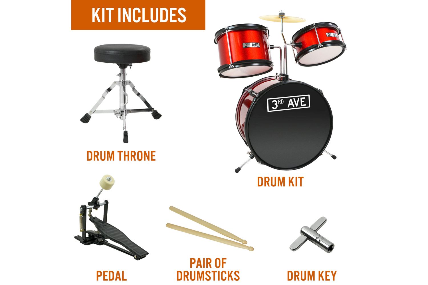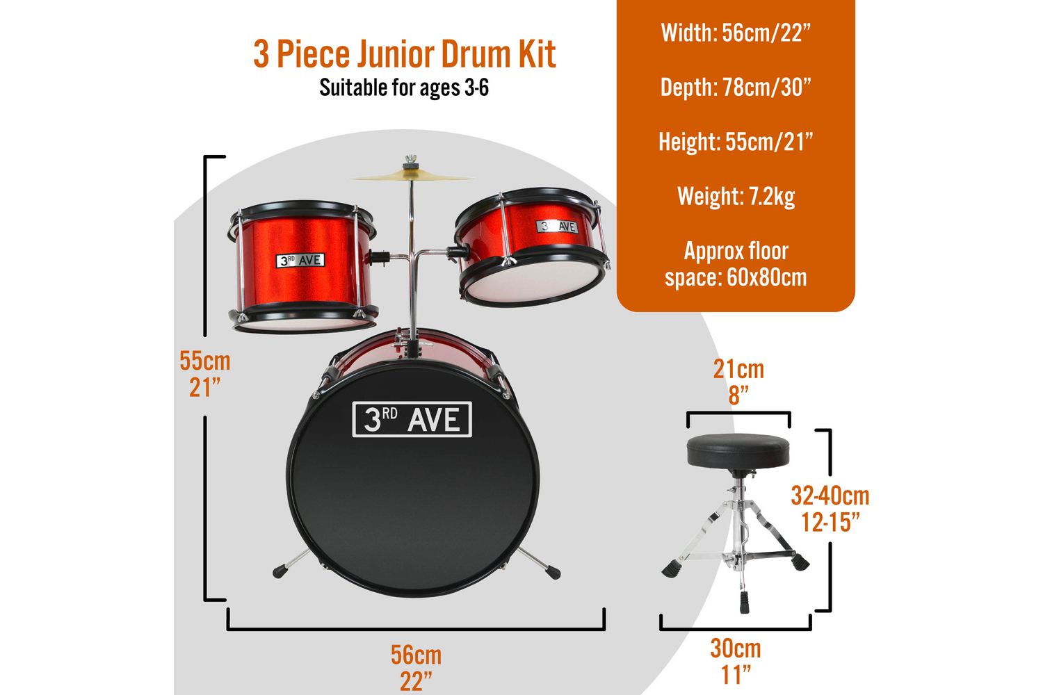 So why wait? Let your child express his musical talent and creativity without limits with the 3RD AVENUE’s 5 Piece Junior Drum Kit in Red – the perfect entry-level drum kit for budding musicians!