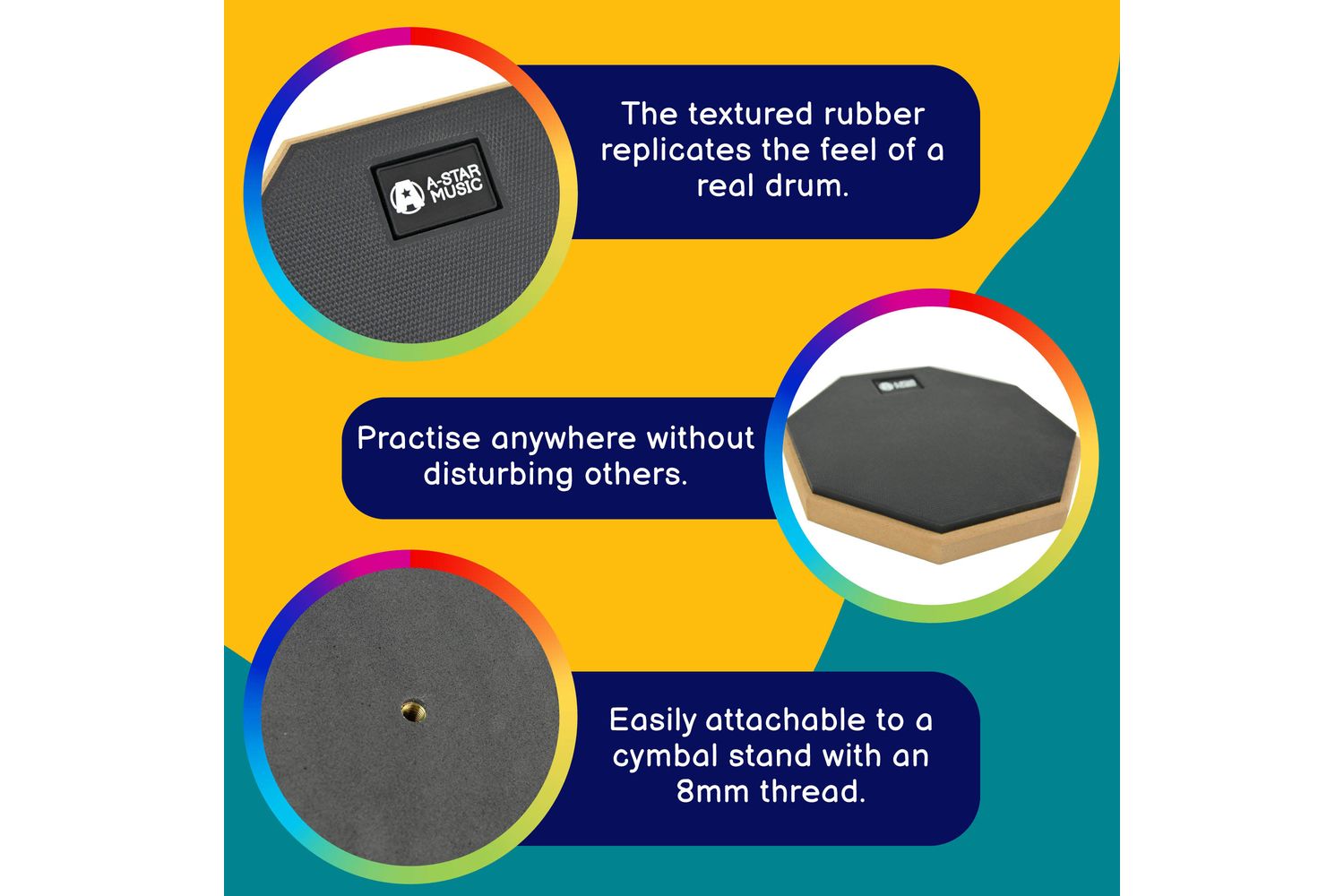 It takes the crescendo of practicality one step further with a non-slip reverse material that guarantees supreme stability while you fine-tune your drumming sequences. What's best? This magical drum pad can conveniently be attached to a cymbal stand, thanks to the inherent 8mm thread, expanding your stage setup. With A-Star, you stay ahead of the beat!