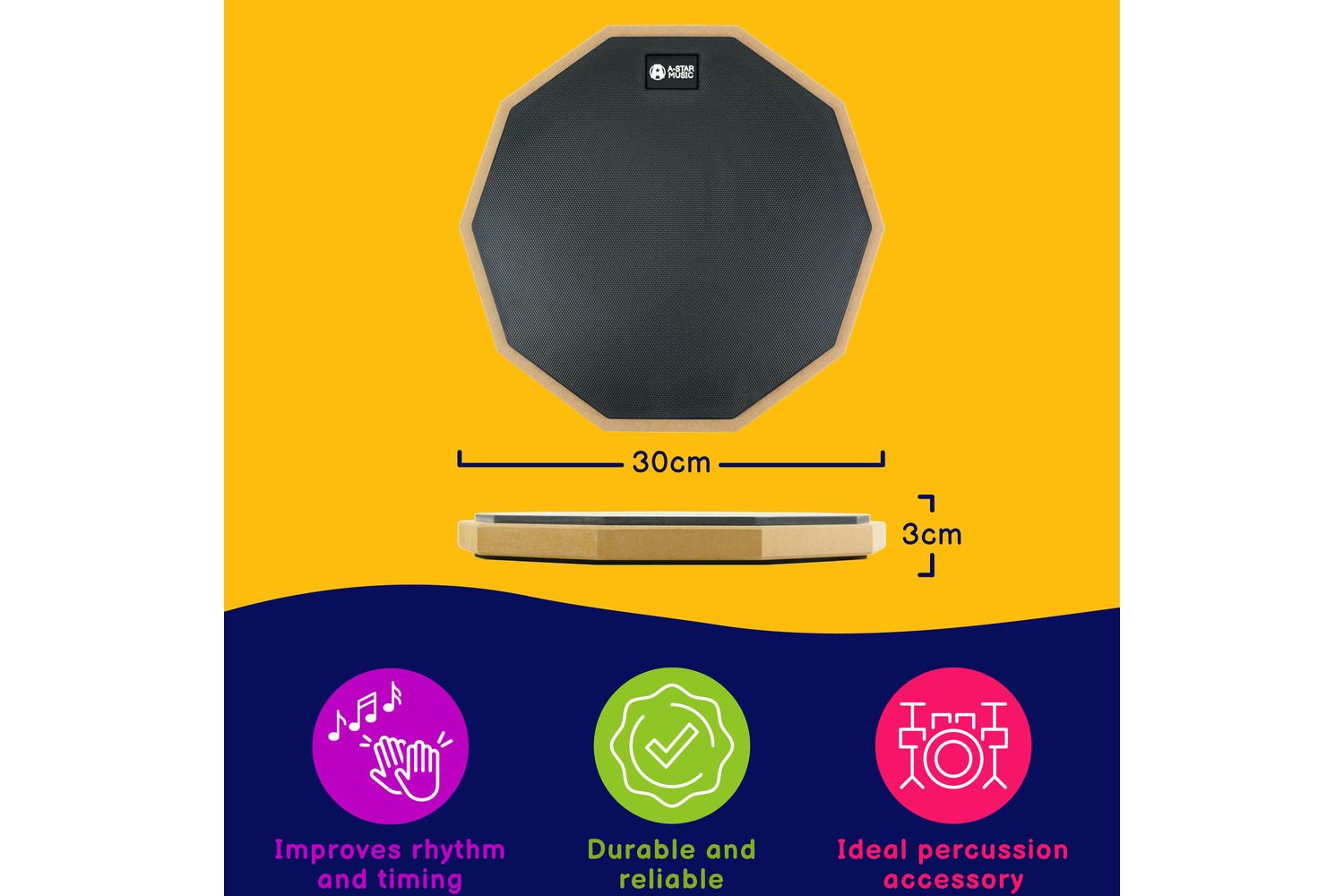 Step into the rhythm of music with the refined A-star 12 Inch Drum Pad. Designed meticulously to cater to all drumming enthusiasts, this practice drum pad is sure to captivate your sensibilities with its top-notch quality and convincing performance. Being a product from A-star, you can expect nothing less!