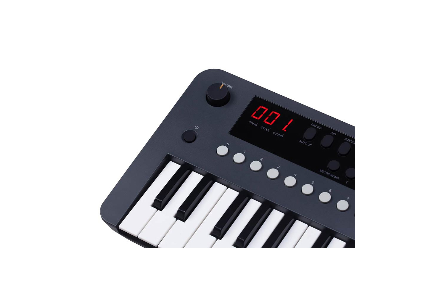 - Connections: 1 x USB-B (MIDI), MIDI out, Headphone jack (1 x 1/8"), Aux-in jack (1 x 1/8"), Output jack (2 x 1/4" mono)