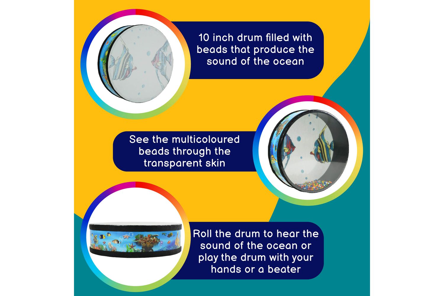 Additionally, this ocean drum can also be beaten with a beater (not included) and thus, proves to be an innovative and interactive percussion masterpiece for both kids and adults, reinstating your fascination towards ocean environments and bringing out your imagination to life through sound! It is perfect for educators who want to introduce the calming effects of wave-like sounds into their sessions and also for musicians wanting to experiment with diverse sounds, capturing the essence of the vast blue sea artistically.