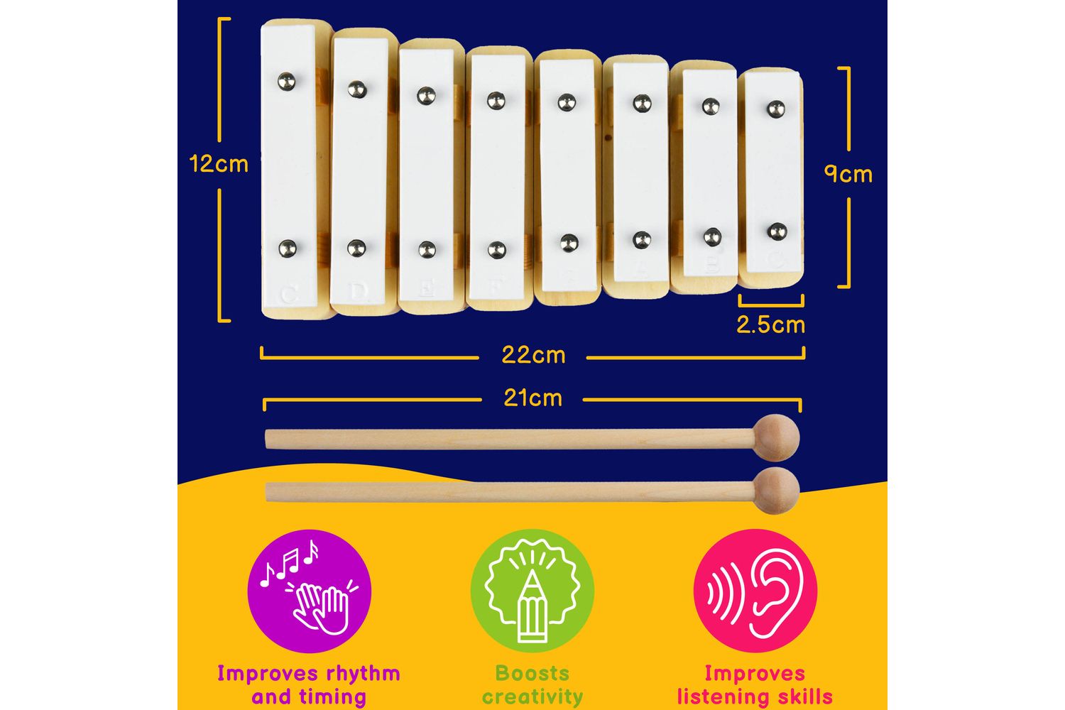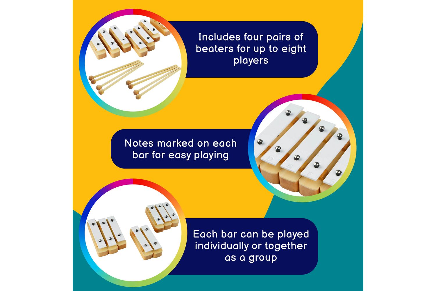 Inspired by early music education methodologies, this set encompasses out a jubilantly bright and crystal clear tone – a phenomenal feature that engages learners in the classroom. This stellar setup does not stop at solo play; it encourages communal interaction and learning too with the provision of 8 individual wooden beaters - perfect for educational activities and band practice.