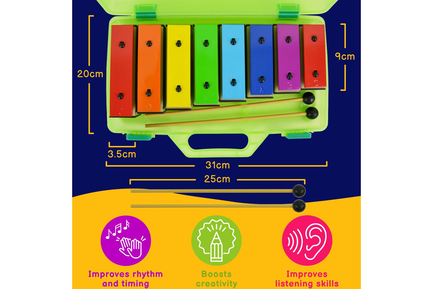 Manufactured by the reputable A-Star brand, this creative music and sound-tool promotes performance skills through the incorporation of colour-coded bars with their note values embossed on top. This ensures learning while having immense fun, endearing it to educators and parents alike. Thanks to its lightness and compactness, it's easy to carry from one play to another. Furthermore, it comes in a strong and portable green case that guarantees protection of the bars while transporting and makes it convenient when storing.