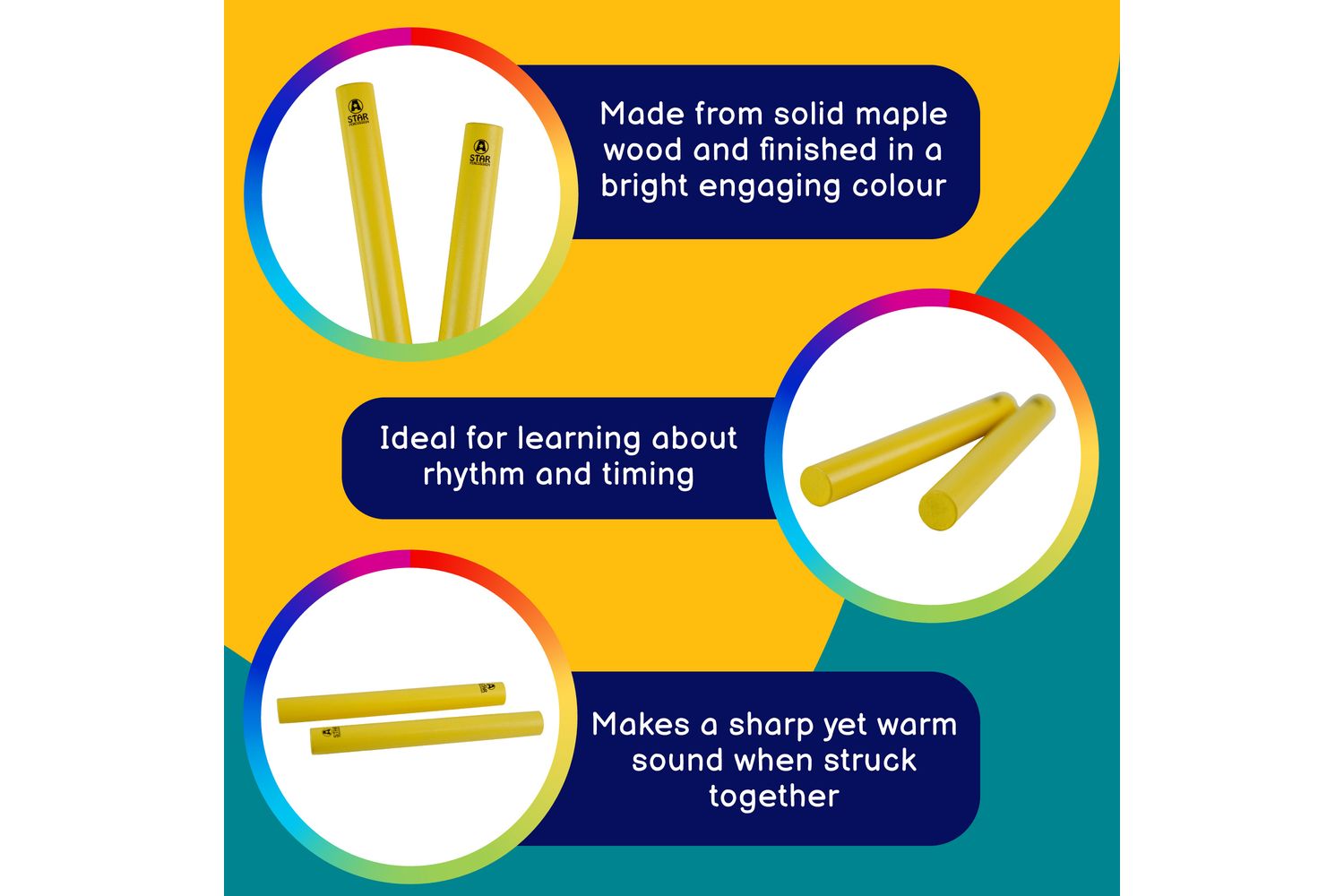 So gift your children the joy of rhythm, sound and colour with A-Star Claves - precisely made for a hands-on musical experience. The clattering sound of these maple wood built claves will soon become your children's heartbeat – a beautiful melody filling your homes with joy and liveliness.