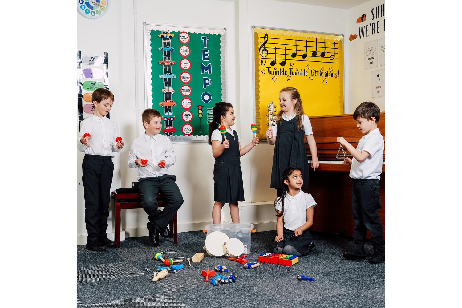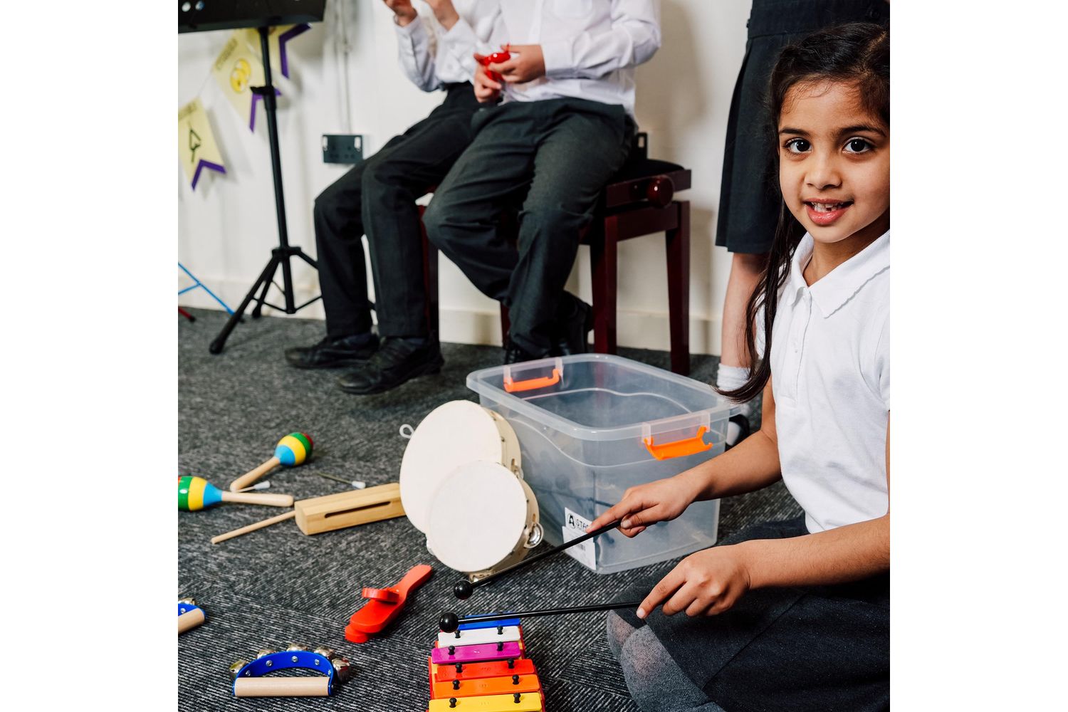 - Extensive selection of percussion equipment for group activities