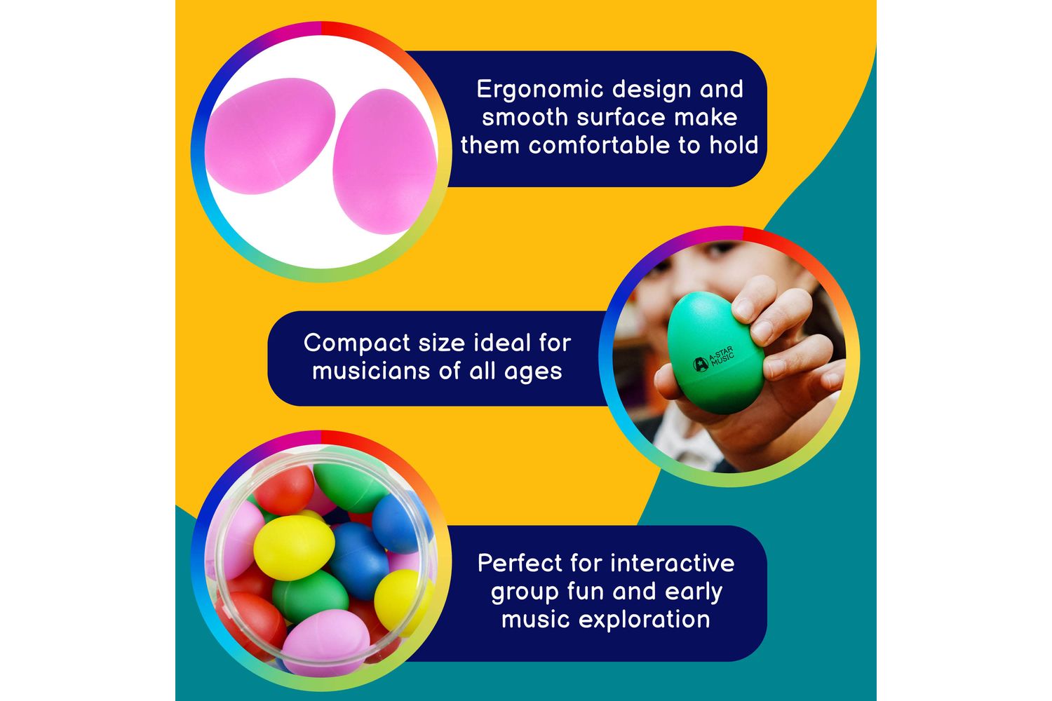 What's even better? Each package comes with a sizable mix of forty egg shakers, making it a suitable pick for classrooms and large group activities. High quality and durably constructed, these shakers can endure the energy and enthusiasm of young learners.