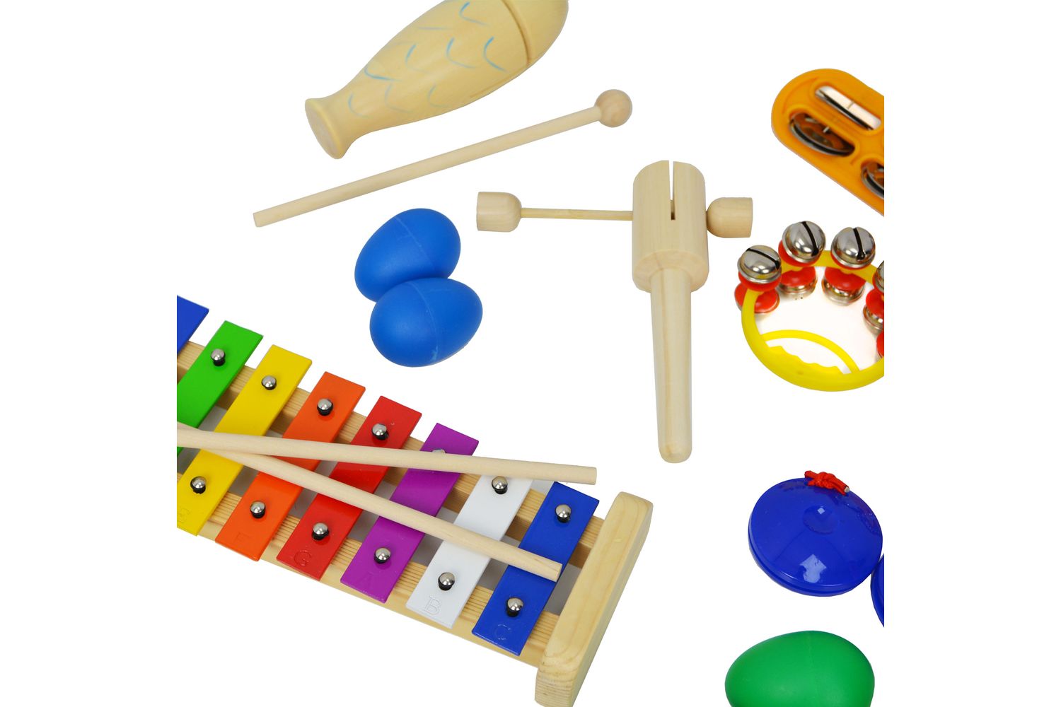 - Wide variety of colourful, handheld percussion instruments