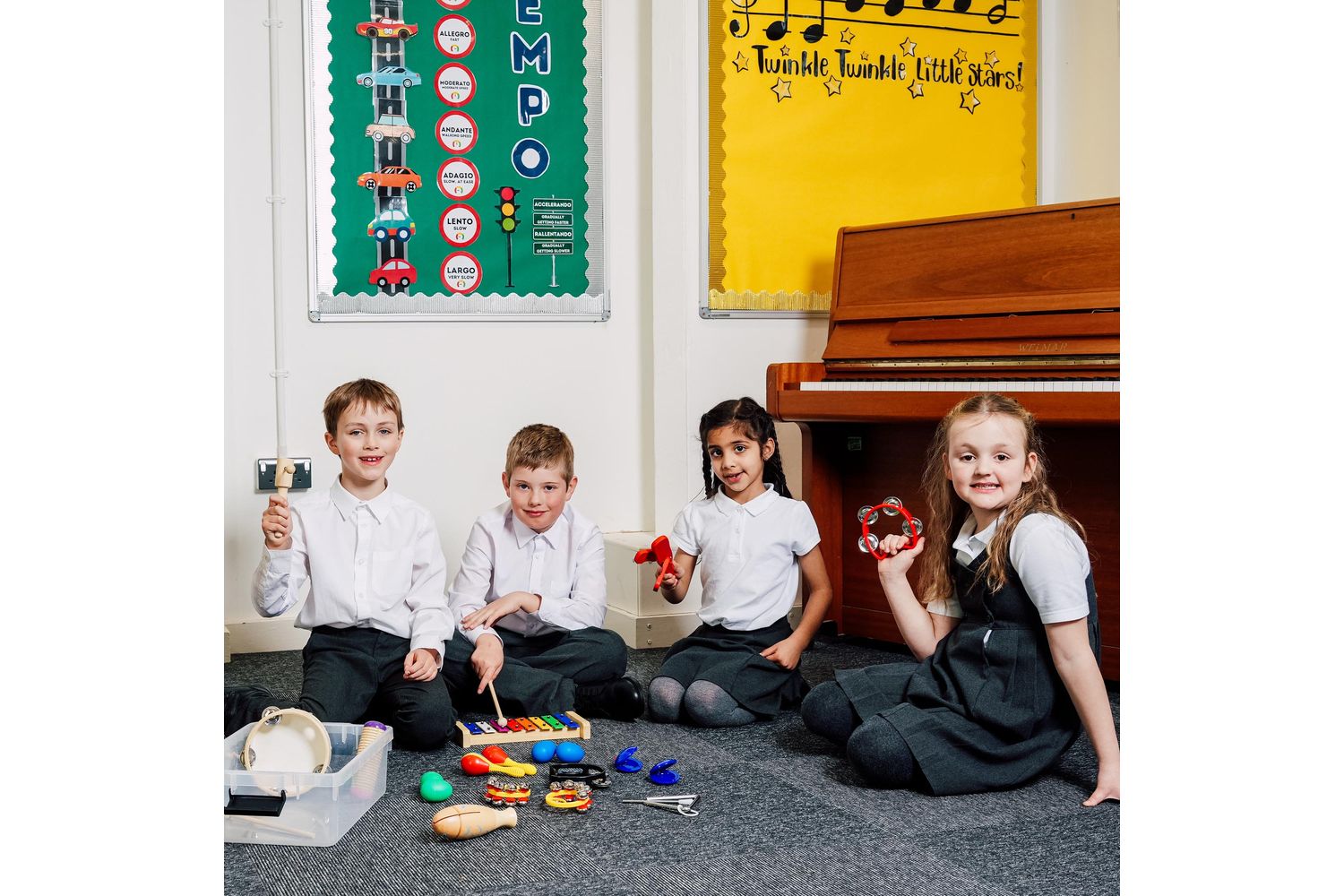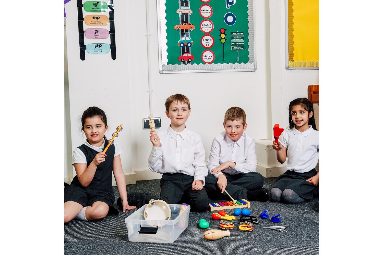 - Tuned and untuned percussions for comprehensive musical introduction