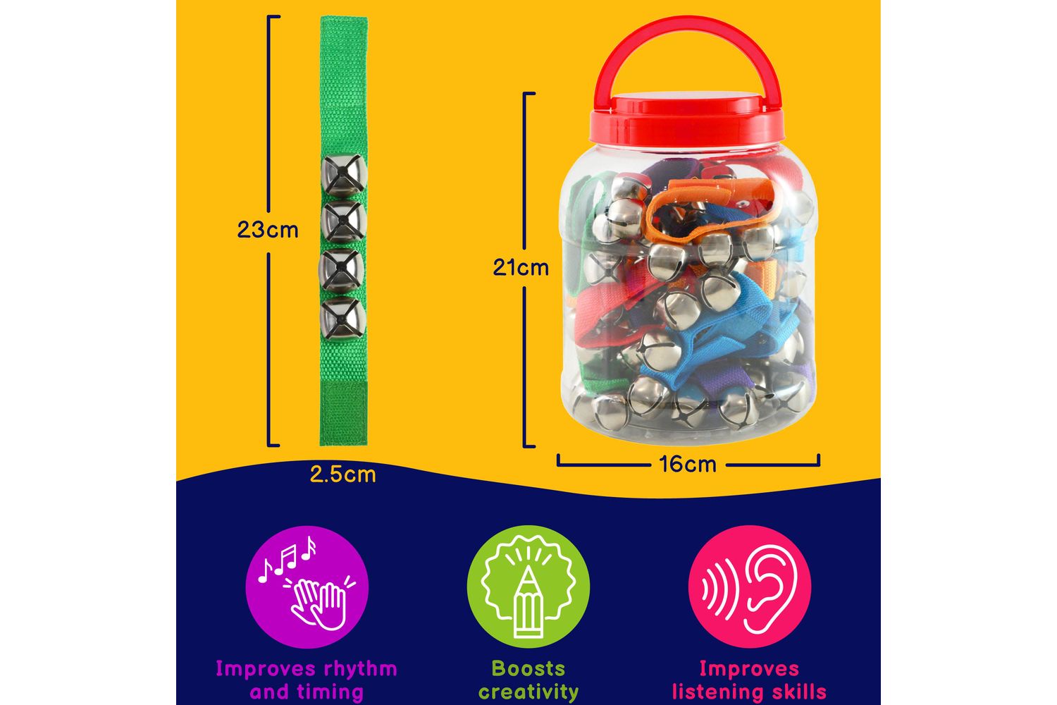 Unleash your child's extravagant creativity with the harmonious jingle of these wrist bells. The resonant tones can stir the imagination with their rich sonic textures and timbre. Fitted with four bells each, these wrist bells provide various musical possibilities with effortless ease. The vivacity of each wrist bell is accentuated by their attractive, mixed colours and striking designs.