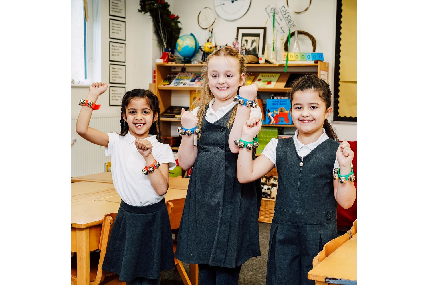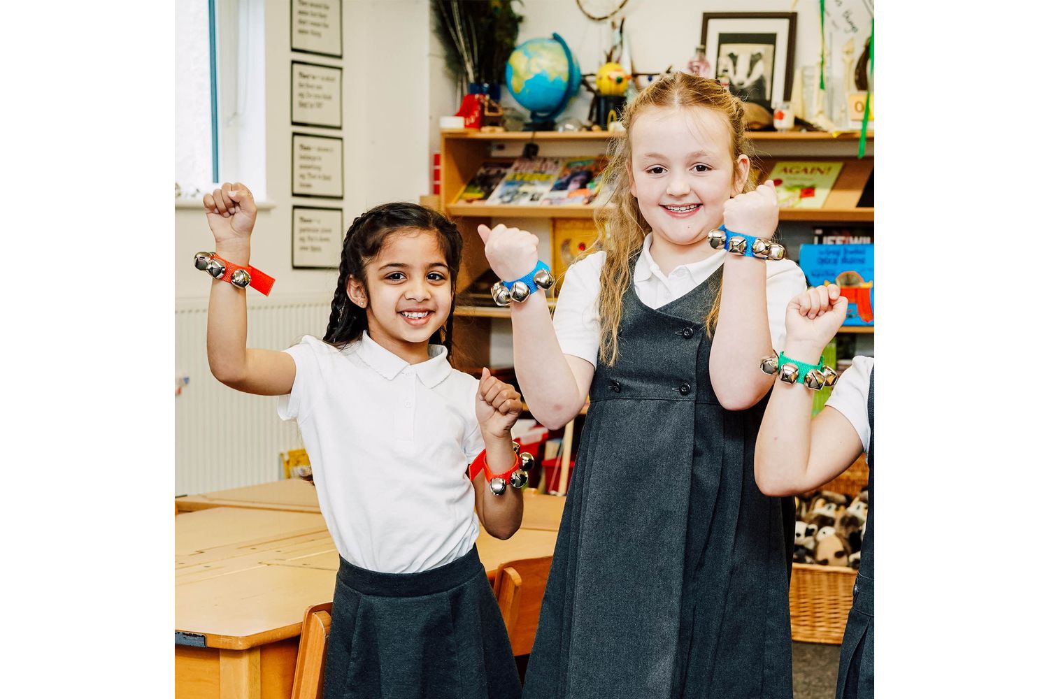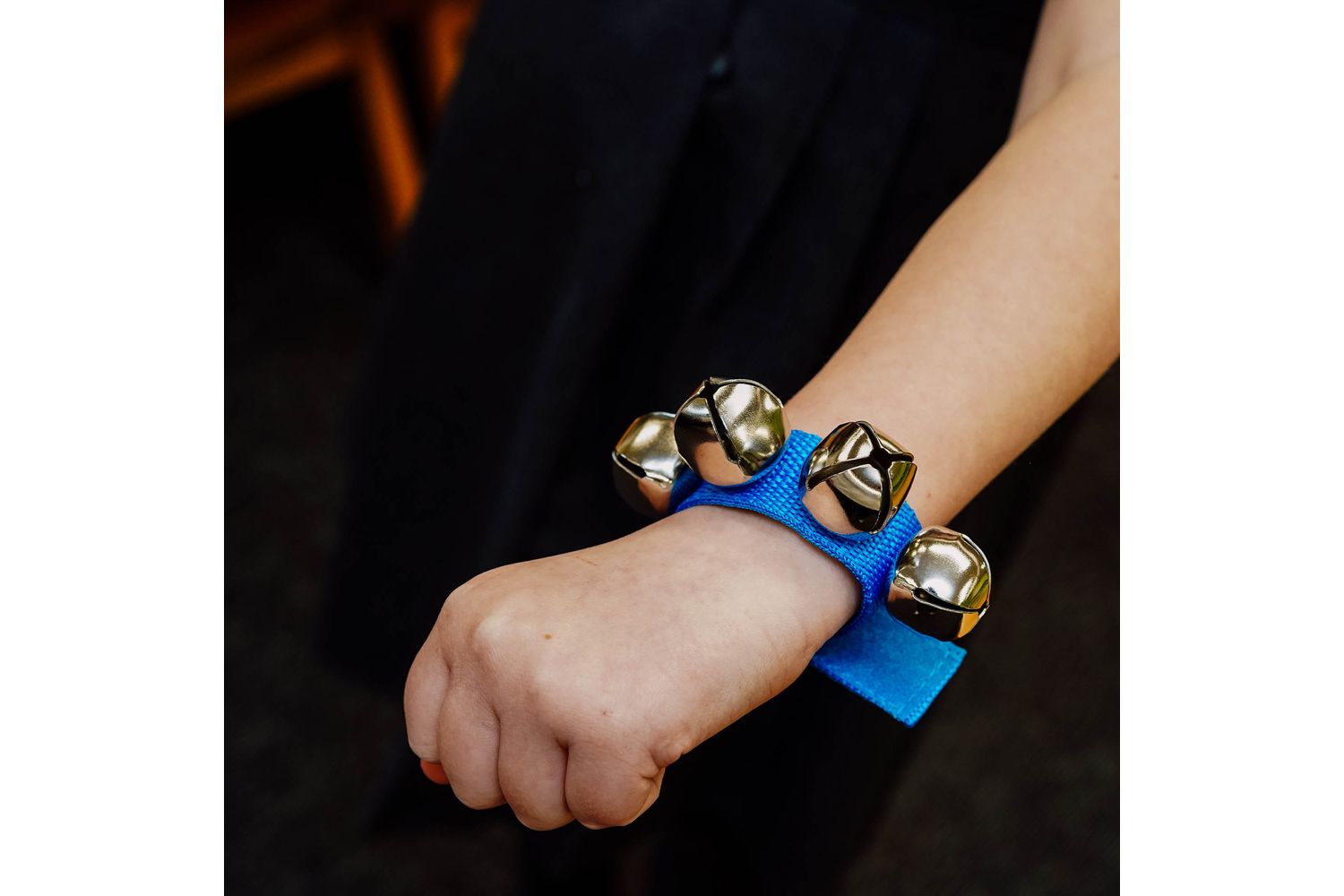 - Four dynamic-sounding bells fitted onto each 2.5cm-strapped wrist bell