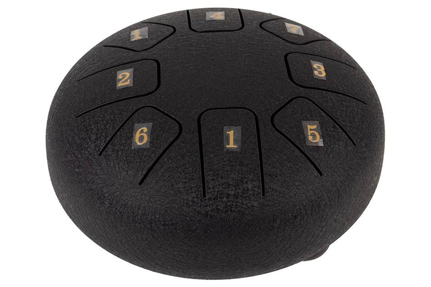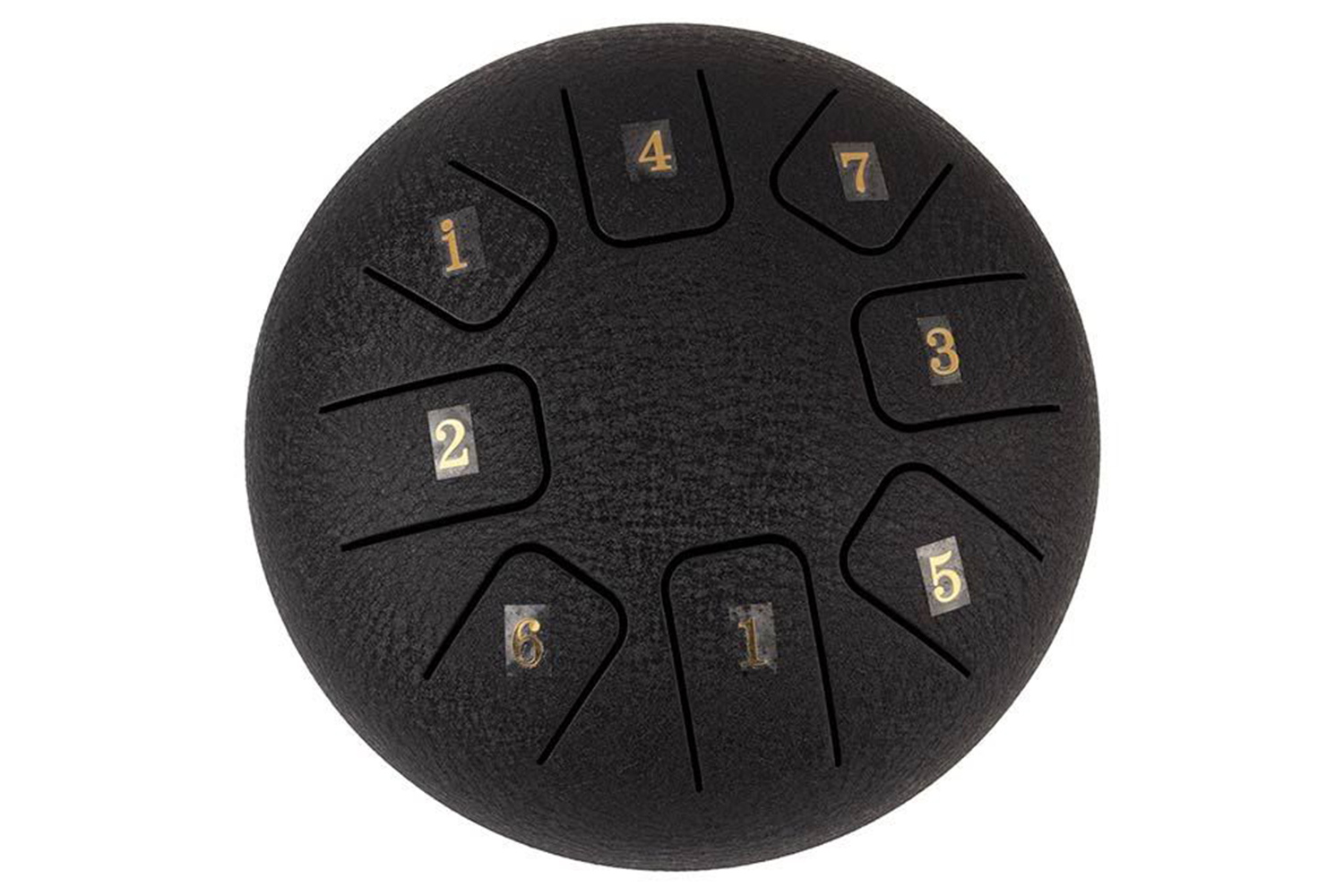 Hayman Steel Tongue Drum - 6" - Textured Black - with Bag, Mallets and Finger Picks.