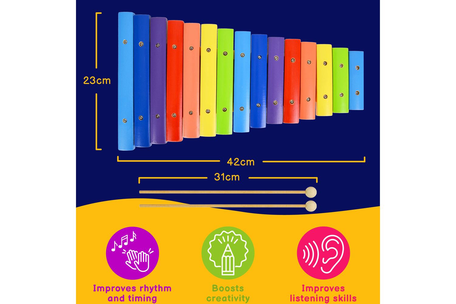 Bring music into your life or classroom with the vibrant and playful A-Star 15 Note Rainbow Xylophone with Beaters. This bright and colourful musical instrument is perfect for beginners and professionals alike, making it an amazing addition to your collection or creative play schedule.