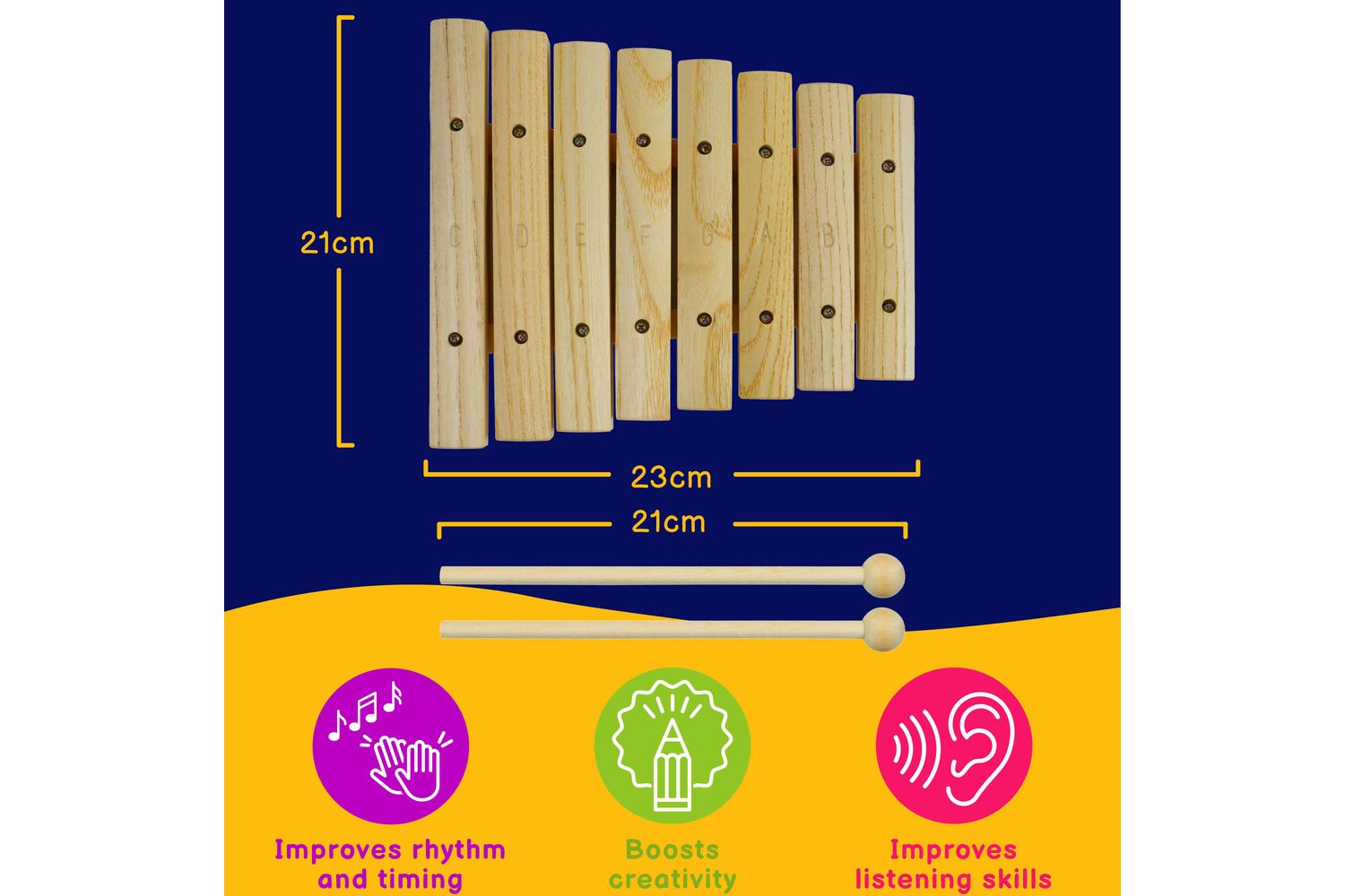 With 8 notes tailored to offer a captivating mix of melodies and harmonies, there’s no concern about hitting a 'wrong' note; simply pick up the two conveniently included wooden beaters and allow your music to flow. This Ireland-sized music marvel puts the power of immersive, invigorating music right at your fingertips.