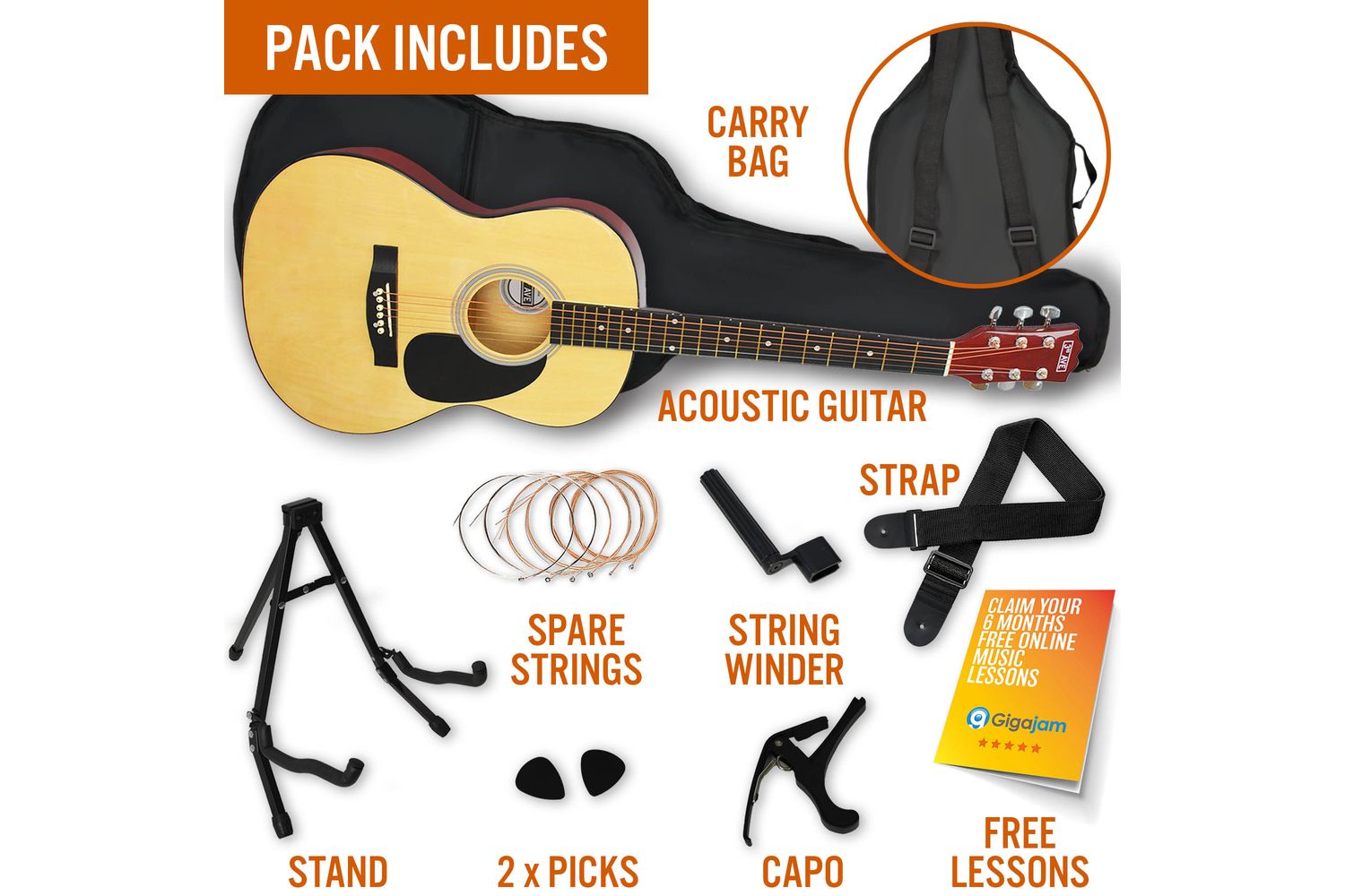 This guitar pack comes subsidized with video-based online lessons from the Gigajam Music School for 6 months. So, not only can you practice at your timeline, but you can also perfect techniques from professional talents from the comfort of your home.