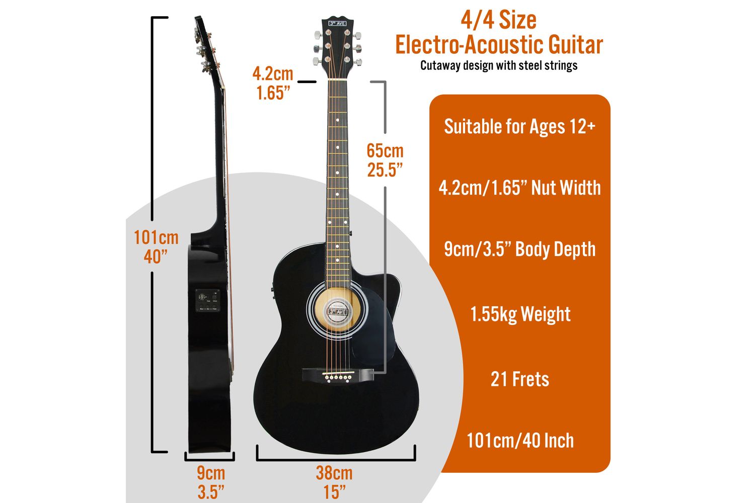 Elevate your musical journey with the 3rd Avenue Cutaway Electro Acoustic Guitar Pack. This high-quality, full-size guitar is impeccably designed catering to budding music enthusiasts aged 12 and above across Ireland. Rendered in a sophisticated black, it creates the perfect symphony between aesthetic appeal and high-performance functionality.