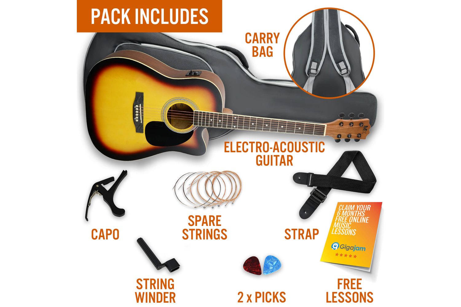 Hone your craft and create your masterpiece with MX Cutaway Electro Acoustic Guitar Pack - Sunburst from 3RD AVENUE.
