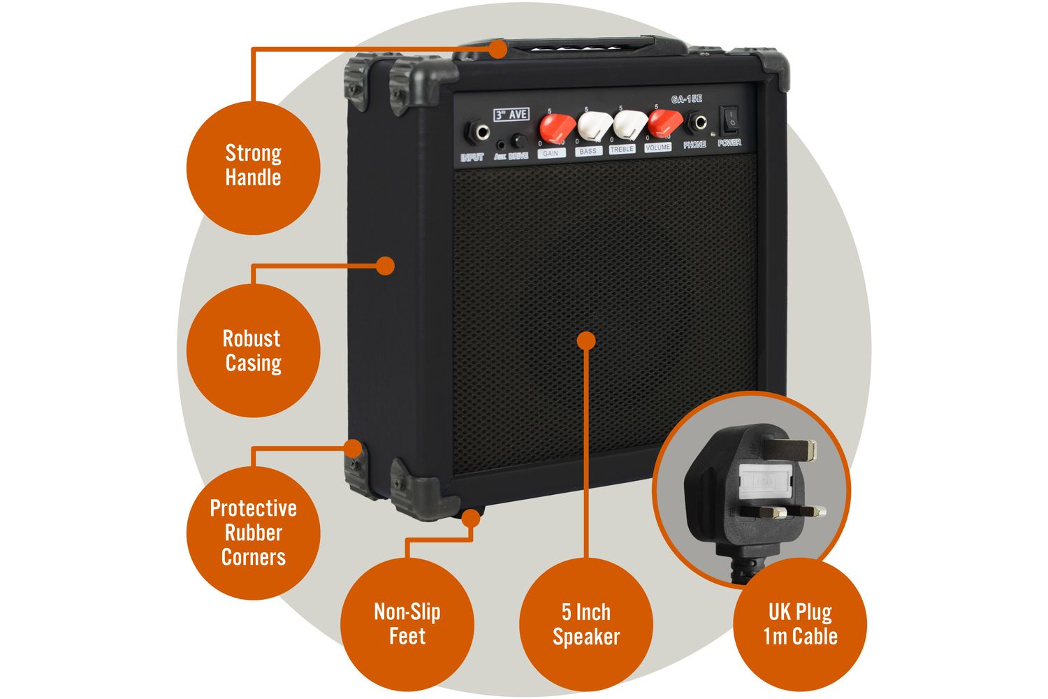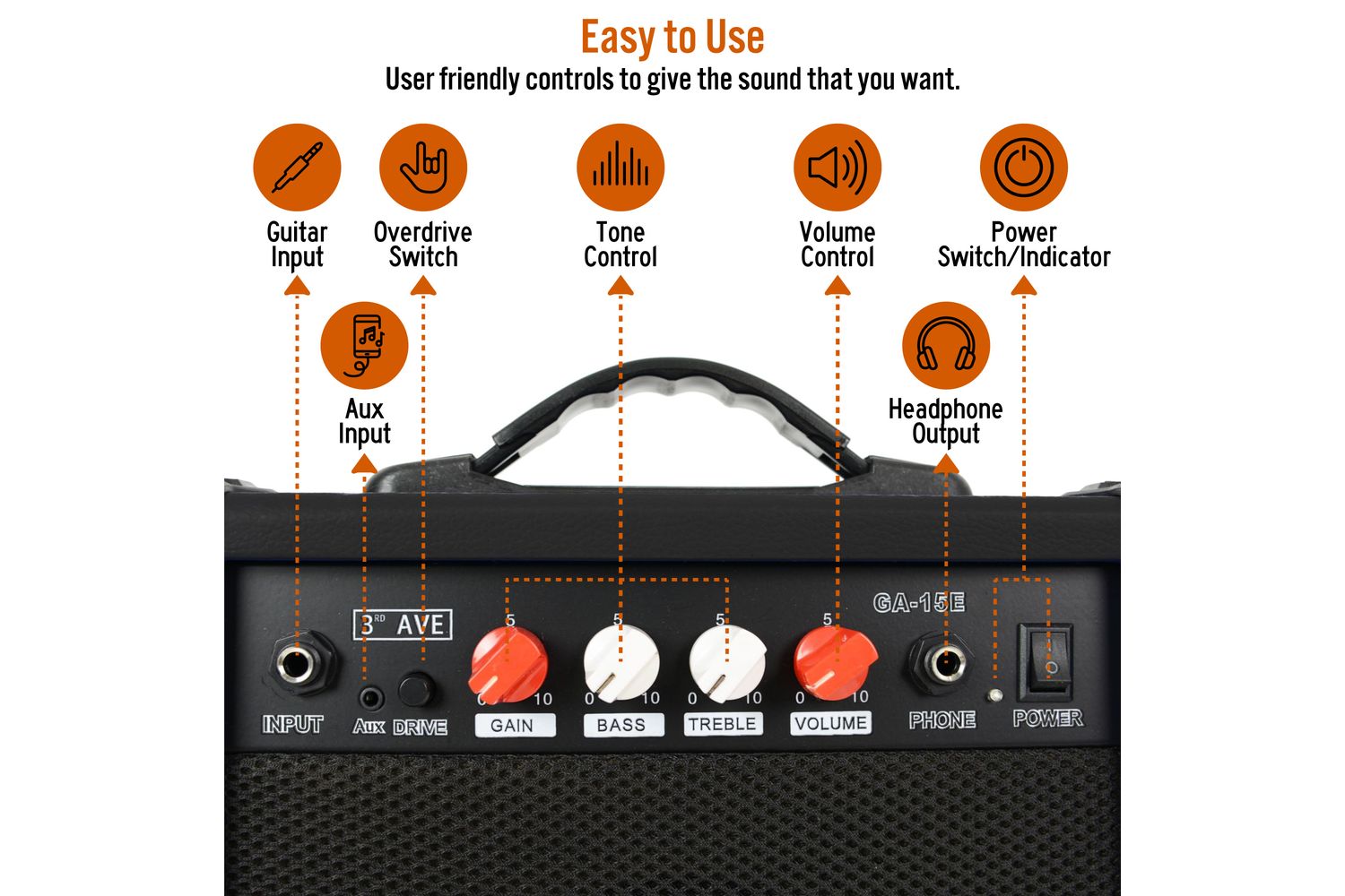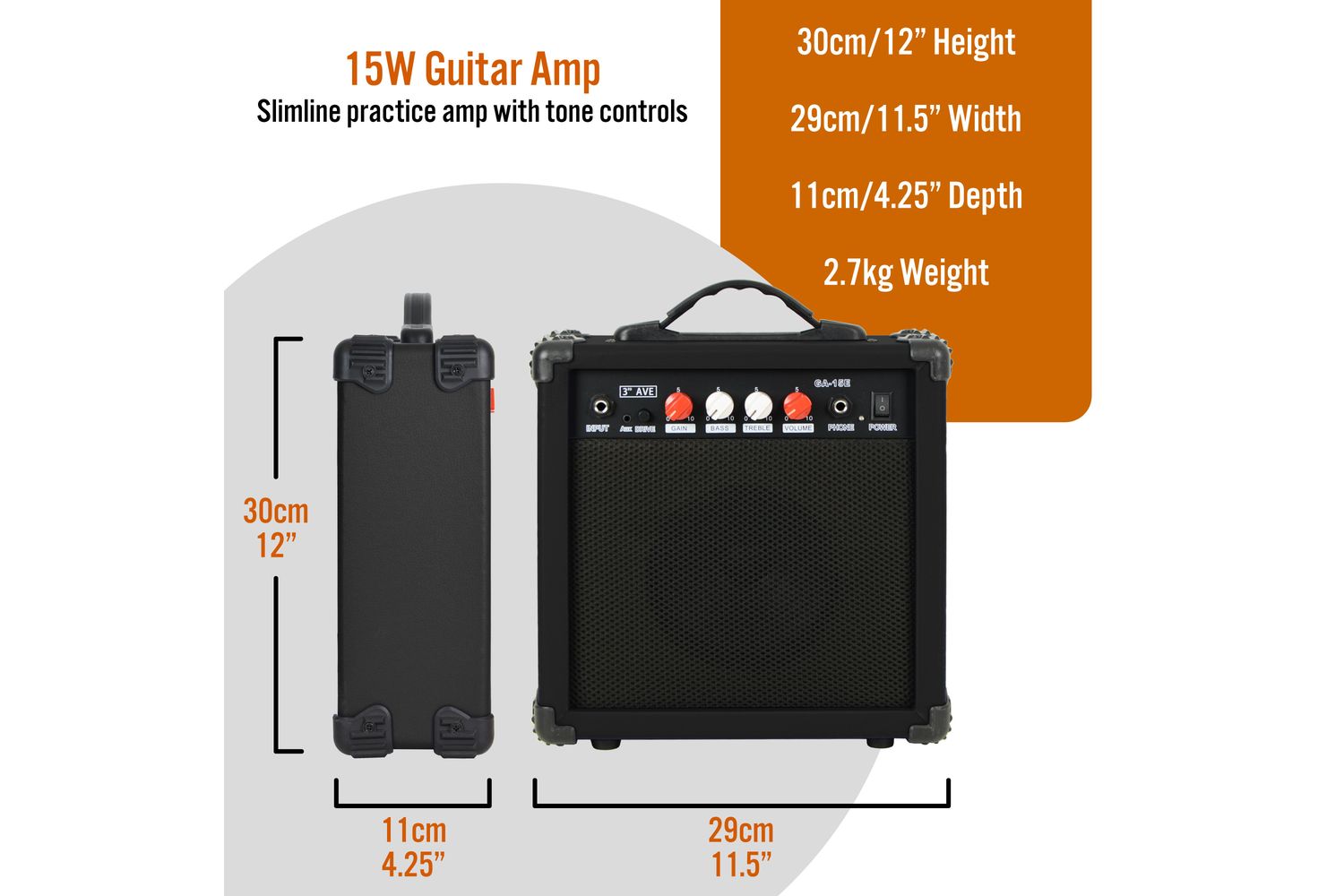 Notice as the 3rd Avenue 15 Watt Electric Guitar Amp revolutionalizes your guitar experience. Far from being a basic guitar accessory, this remarkable amp boasts portability, making it an ideal companion for on-the-go musicians. Considered to perfection are your practice hours—the amp's headphone input allows for quiet play, so you need not worry about disturbing your neighbors during late-night jamming sessions.