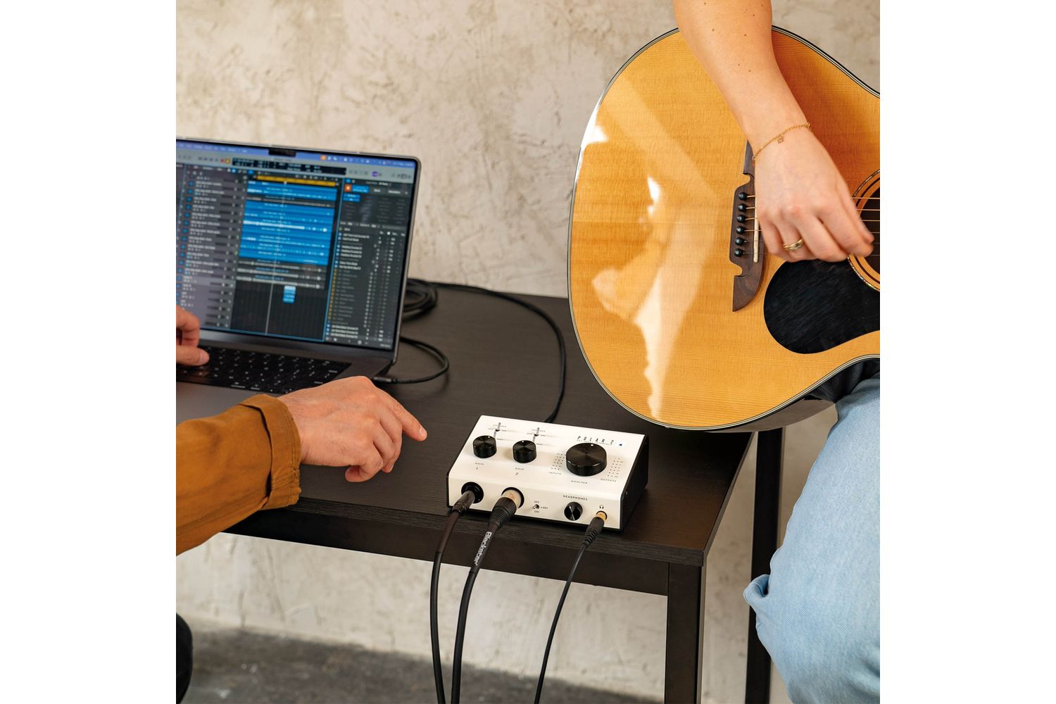 Enhance your playing with this 2-channel Audio Interface equipped with a high output headphone amp, balanced outputs for professional monitoring, visual level meters, and a propriety 'Enhance' switch. Whether you're strumming away at home, playing a spontaneous acoustic live set or deep inside the rhythm in a studio, the POLAR 2 ensures every vibration is accurately translated into pristine-quality audio that captures every intricate detail of your solemn endeavour.