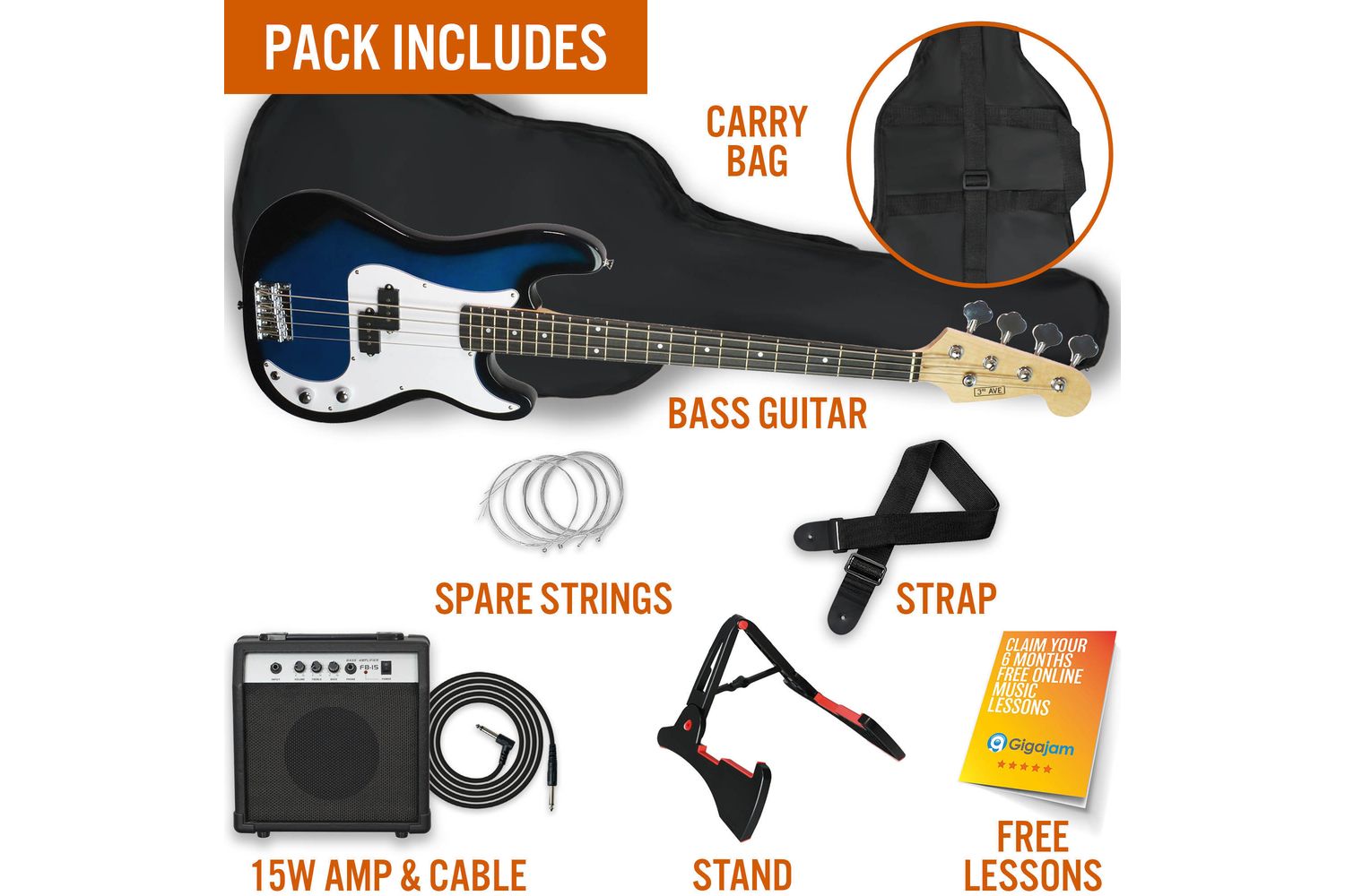 If you are looking for a bass guitar package that sounds as impressive as its looks, the 3rd Avenue Bass Guitar Pack makes a fine selection. Join the influential community of 3rd Avenue players in Ireland, and let your bass guitar journey begin in the blueburst glory of this premium pack.