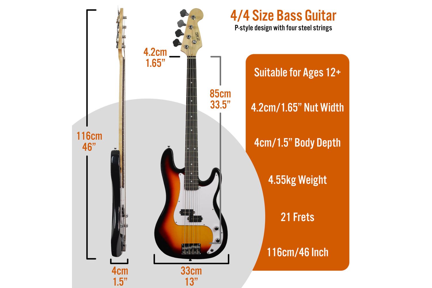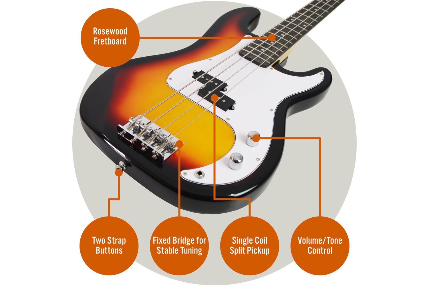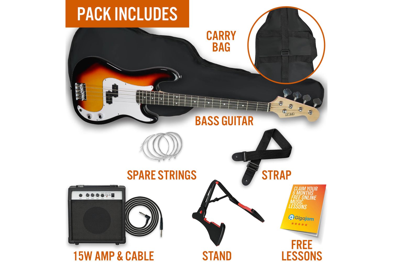 With the 3rd Avenue Bass Guitar Pack - Sunburst, dive into the realm of music with confidence and all the components you need to begin.
