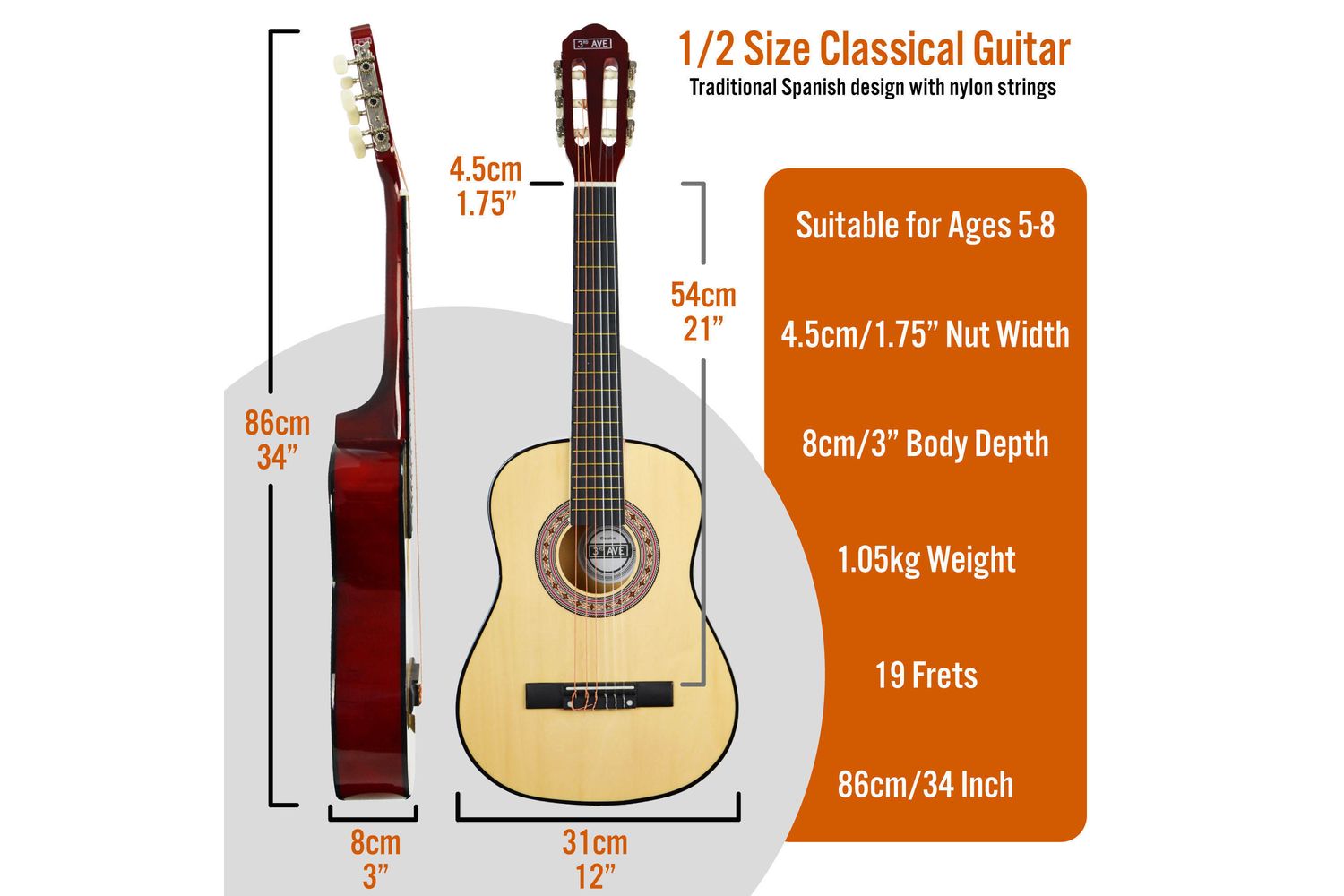- Product Name: 3rd Avenue 12 Size Classical Guitar Pack