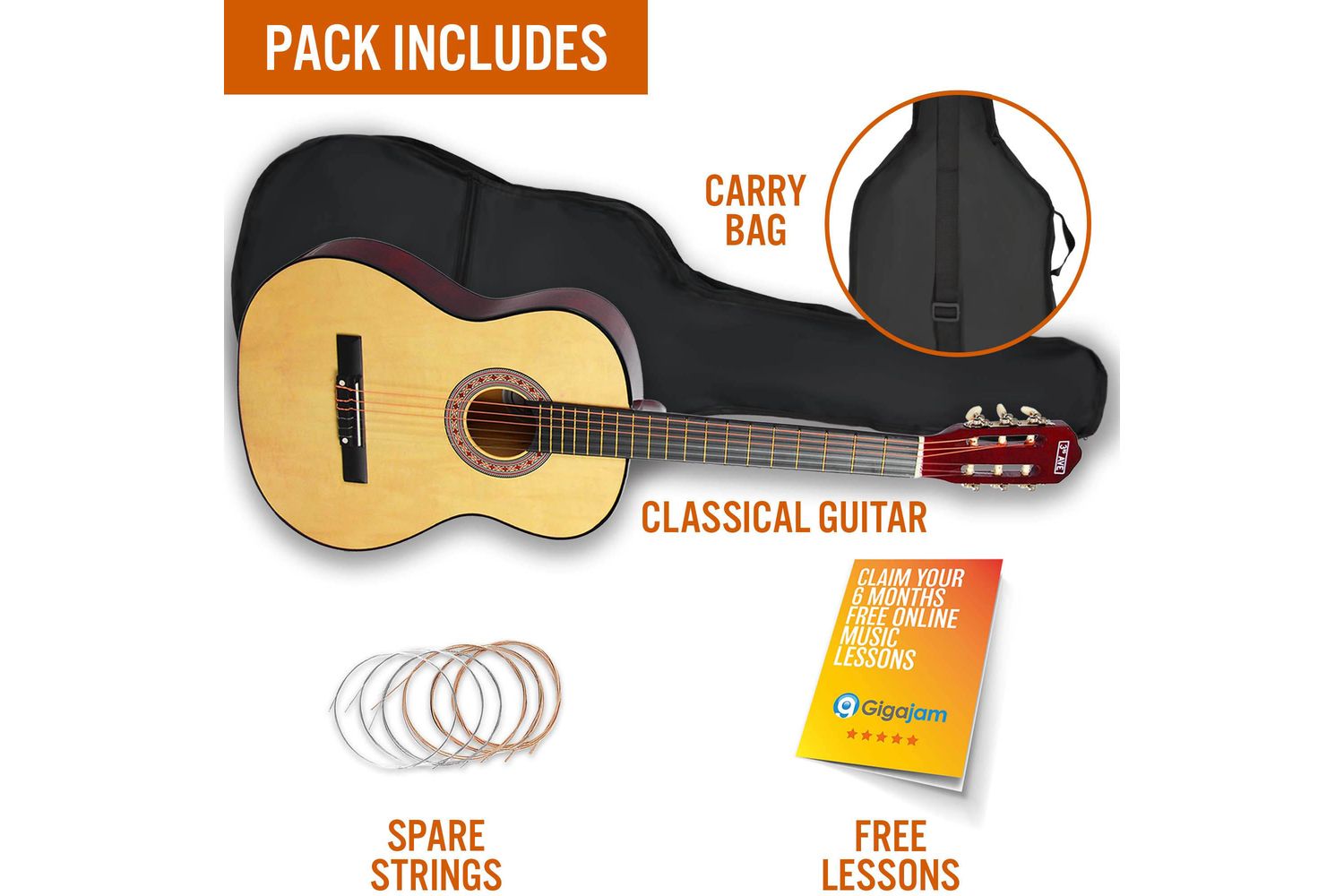 Begin your fascinating journey into the world of music with the 3rd Avenue 34 Size Classical Guitar Pack. This beginner guitar set from 3rd Avenue stands out from others with its top-quality features appealing specifically to the Irish audience. Packaged supremely in natural finish and designed particularly for beginners, this collection presents all that a budding musician needs to embark on their classical guitar training.