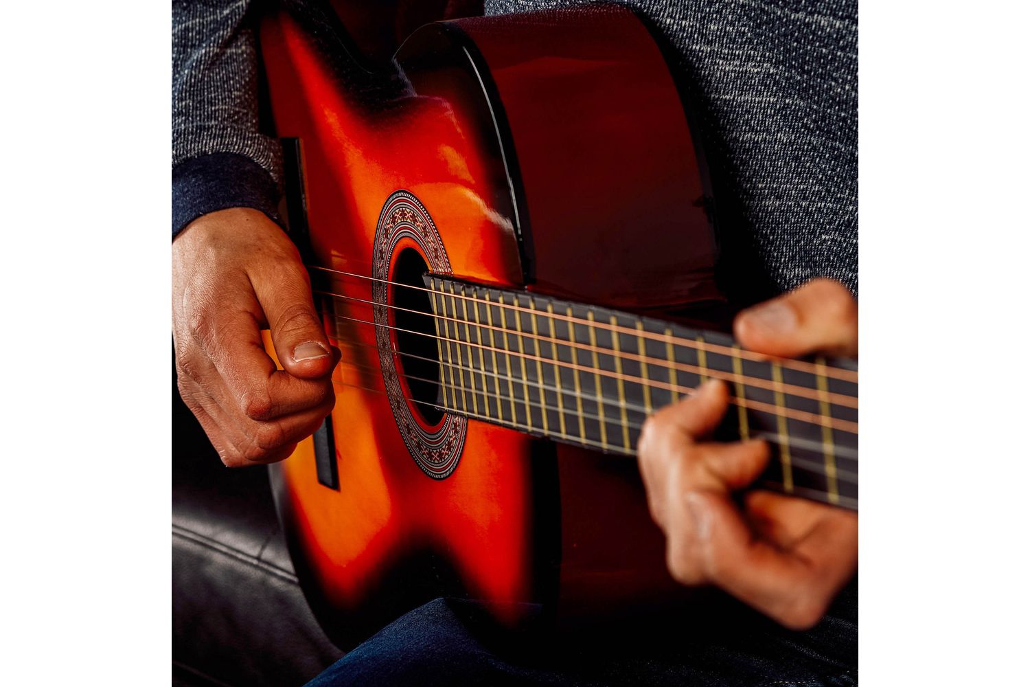 Begin your musical journey with this complete beginner bundle that comes generously packed with a variety of indispensable accessories, including a lightweight carry bag for easy transportation, and a set of spare nylon strings ready for when you need them. Diligently designed to blend tradition with innovation, the guitar boasts an impressive poplar top, a dyed maple fretboard and a sunburst finish—everything from the fine details to the larger aesthetic serves to heighten your guitar-playing experience.