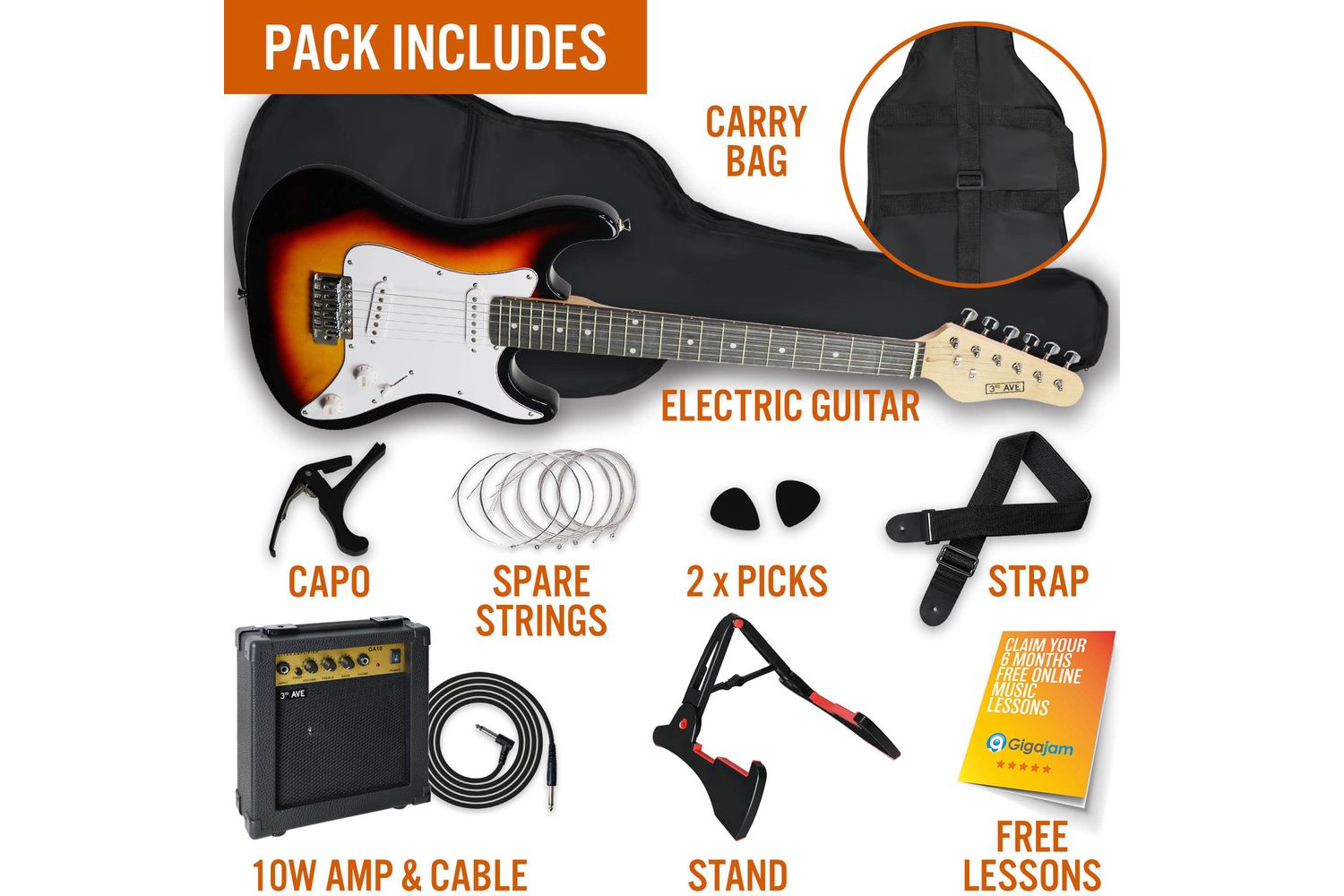 Ignite your creative stance with this Sunburst 3rd Avenue 34 Electric Guitar Pack, promising to deliver the best entryway to your musical voyage. Specially catered for the younger generation, this 6-string, right-handed electric guitar set includes everything essential to embark on your learning adventure.