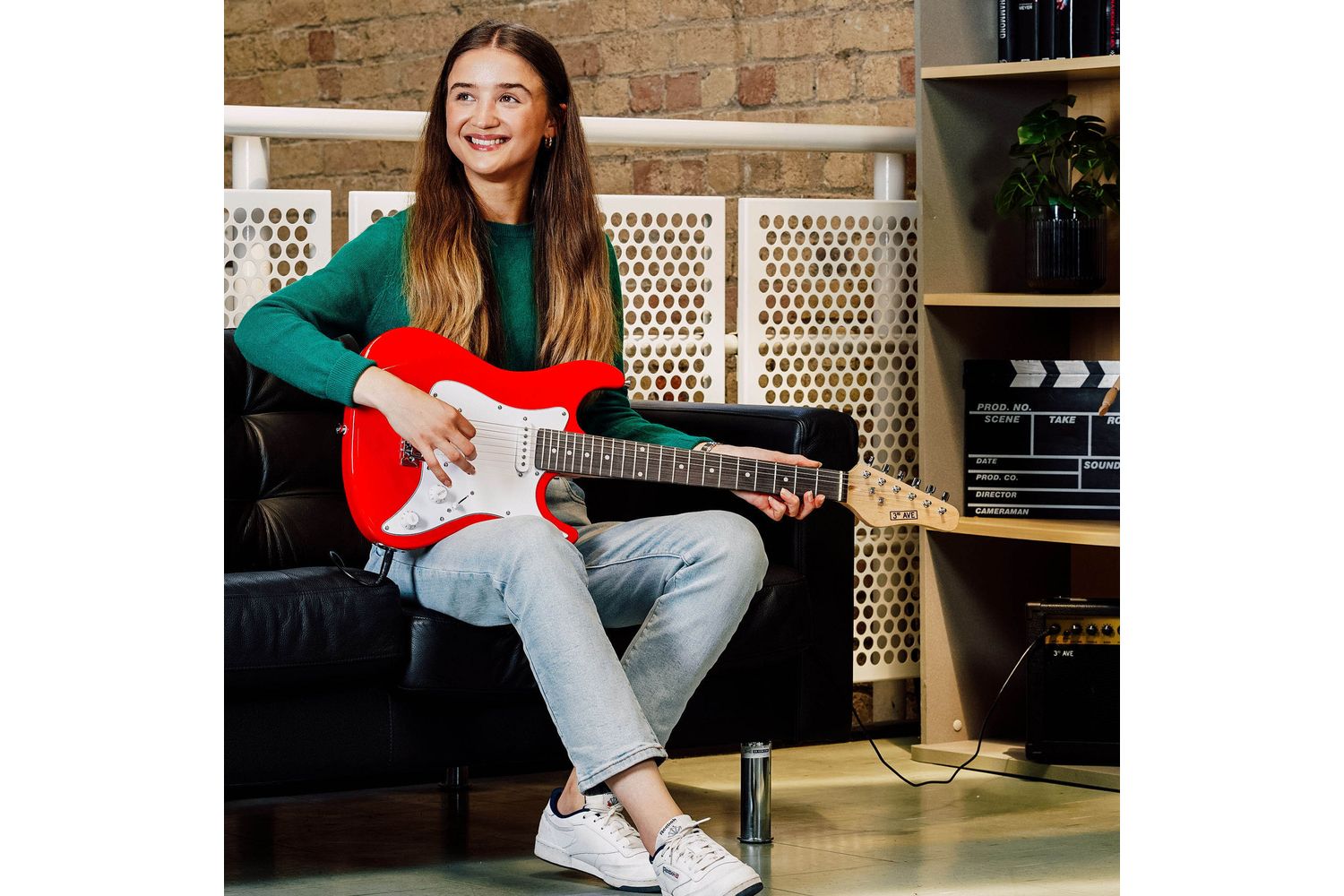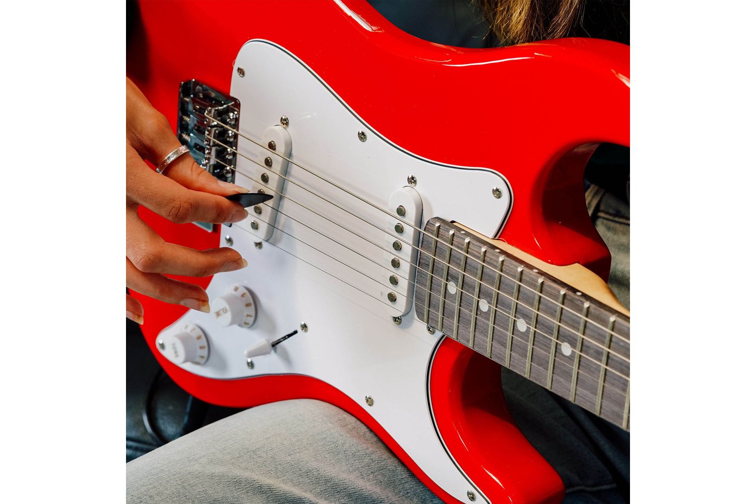 Encouraging experimentation and learning, the guitar features 2 single coil pickups paired with a 3-way switch to shape your riveting sound. Easy to fiddle with tone and volume controls, it also boasts the stability of a fixed bridge keeping your tuning exact and precise.