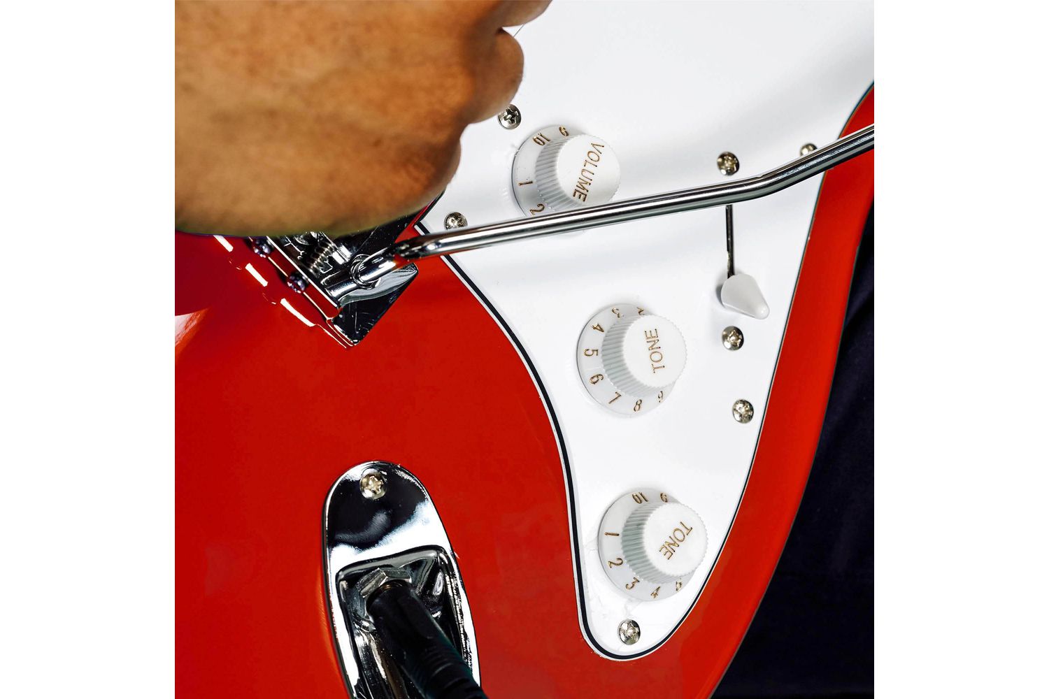 This full-size right-handed electric guitar carries an excellently crafted steel-string design, ensuring durability and consistent sound. It boasts a 5-way tone selector, 3 single coil pickups fit for all your strumming needs and a fixed bridge to maintain flawless tuning. The combination of these features permits an exciting range of tonal experimentation, helping you mold your unique musical identity on this ready-to-play instrument.