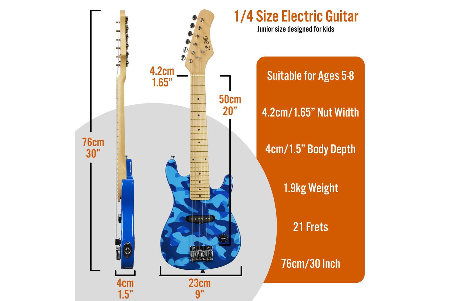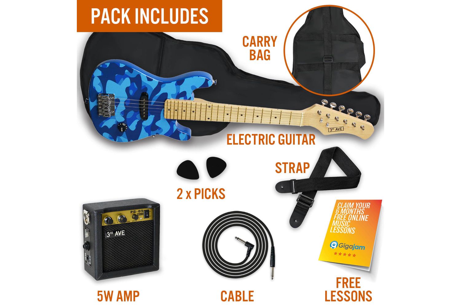 Welcome rock stars of tomorrow! Calling out all passionate youngsters who yearn to explore the exciting world of rock music. Unveiling the perfect starting point, the 3rd Avenue Junior Electric Guitar Pack in a stylish Blue Camo design. This complete guitar bundle is tailor-made to kickstart your exciting musical journey.