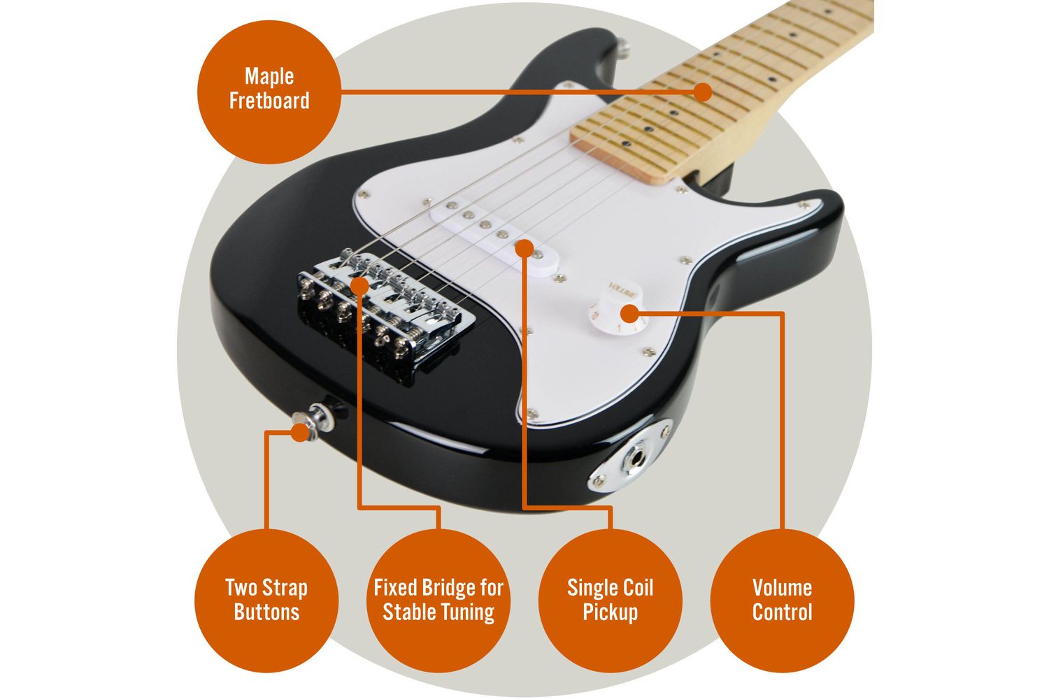 This 3rd Avenue guitar is not just about looks; it's also about convenience and comfort. Its lightweight design, smooth maple fretboard and low string action ensure comfortable, effortless jamming sessions. With this kid's electric guitar, tuning into the music need not be hard; the encouraging notes emanating from our guitar are designed to sow the seeds of love for music deep within their hearts.