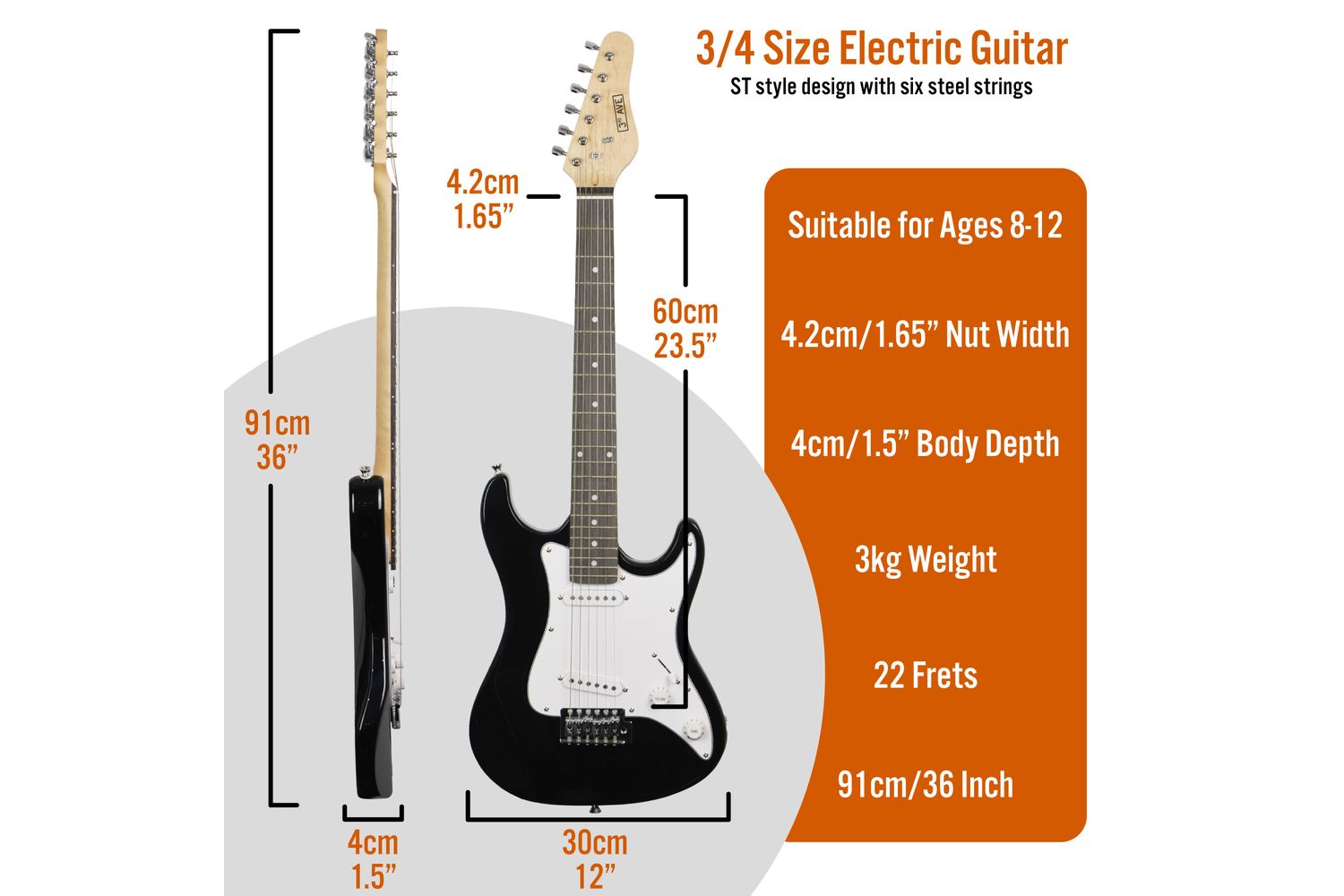 - 3/4 size electric guitar