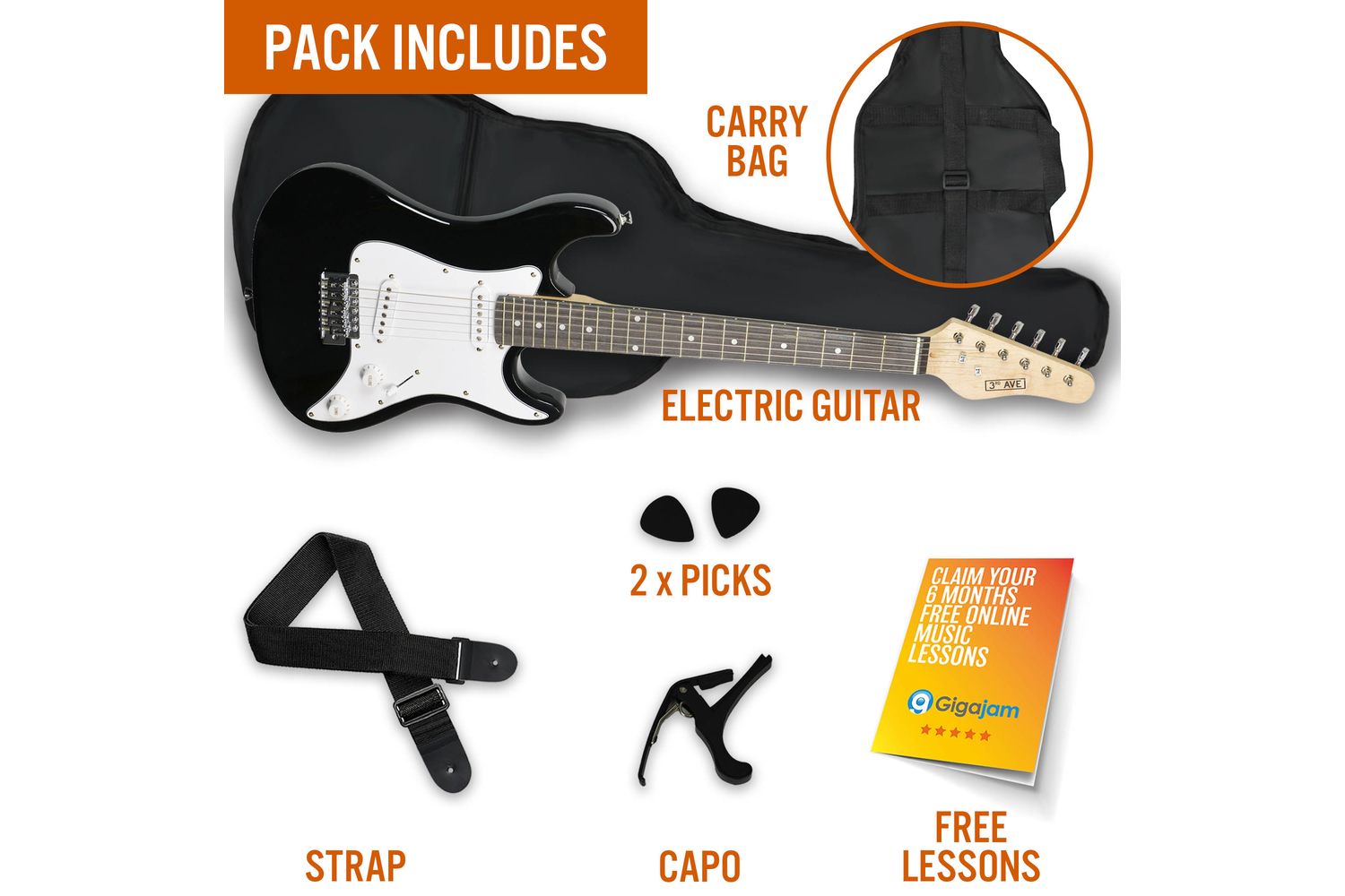 A step into the creative world of music production is also available with an inclusion of 6 Months Online Lessons from top-rated Gigajam Music School. Learn at your own pace under the guidance of seasoned musicians and pros, expanding your repertoire and guitar playing skills further.