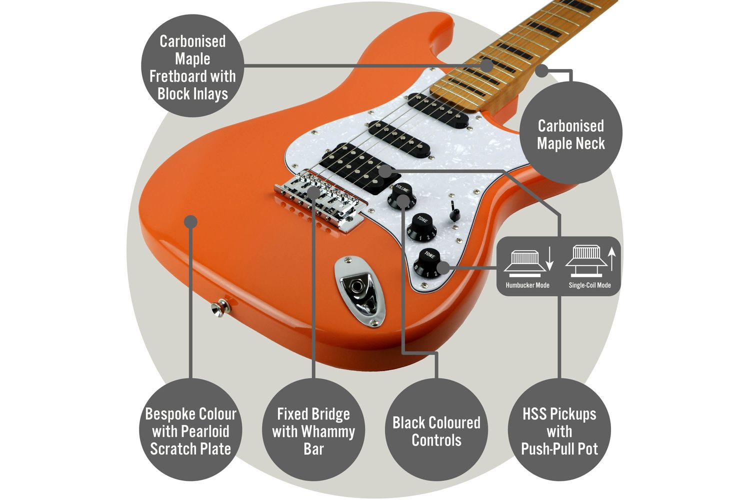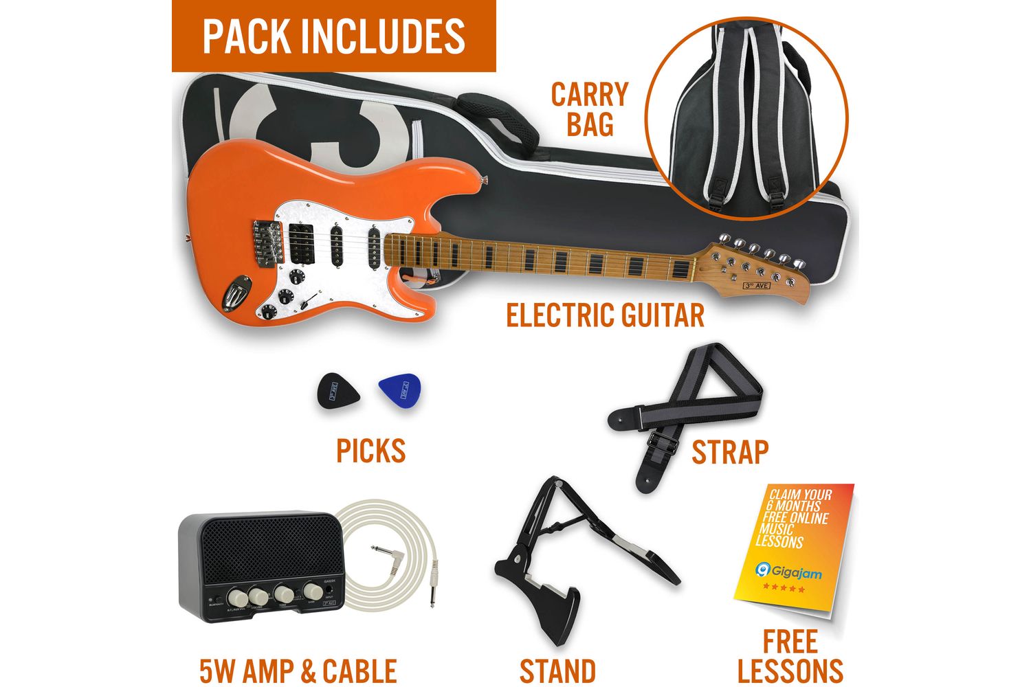 Ignite your passion for sound with the mesmerising 3rd Avenue Stateside Series Electric Guitar Pack - Canyon! A gem in the world of guitars and basses, it's the inconceivable blend of slick design and adept sound quality that makes this electrifying piece a must-own. The pack comes in a kapow Canyon Orange gloss finish that elevates your presence the second you step on stage. Truly, it's more than just a beginner's guitar; this electric marvel promises a captivating and resonant musical journey.