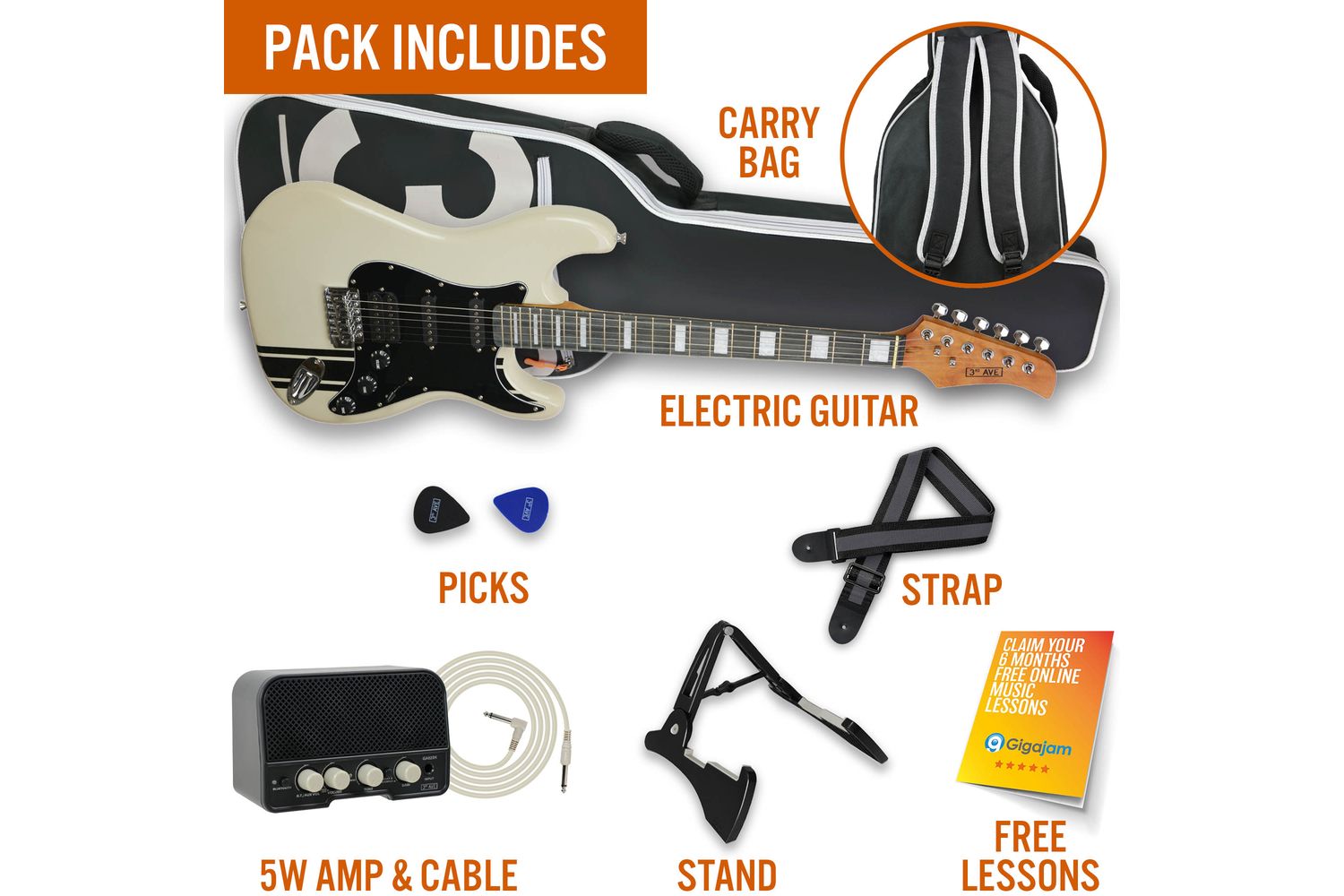 Start riffing up a storm and become the electric guitar player you have always wanted to be with this standout 3rd Avenue Stateside Electric Guitar Pack in Atla. This product is designed for musicians who crave something a little different from the rest, combining performance and style in one package. Tuned and ready for rock, pop, blues, or whatever strikes your musical fancy, let your musical journey begin here!