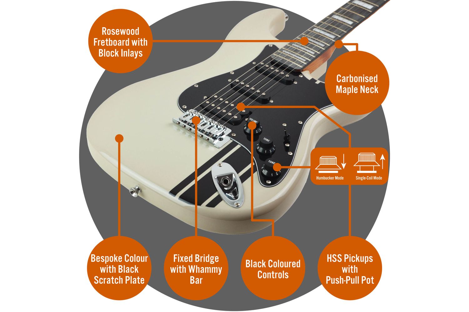 - H-S-S pickup setup for versatile tone generation