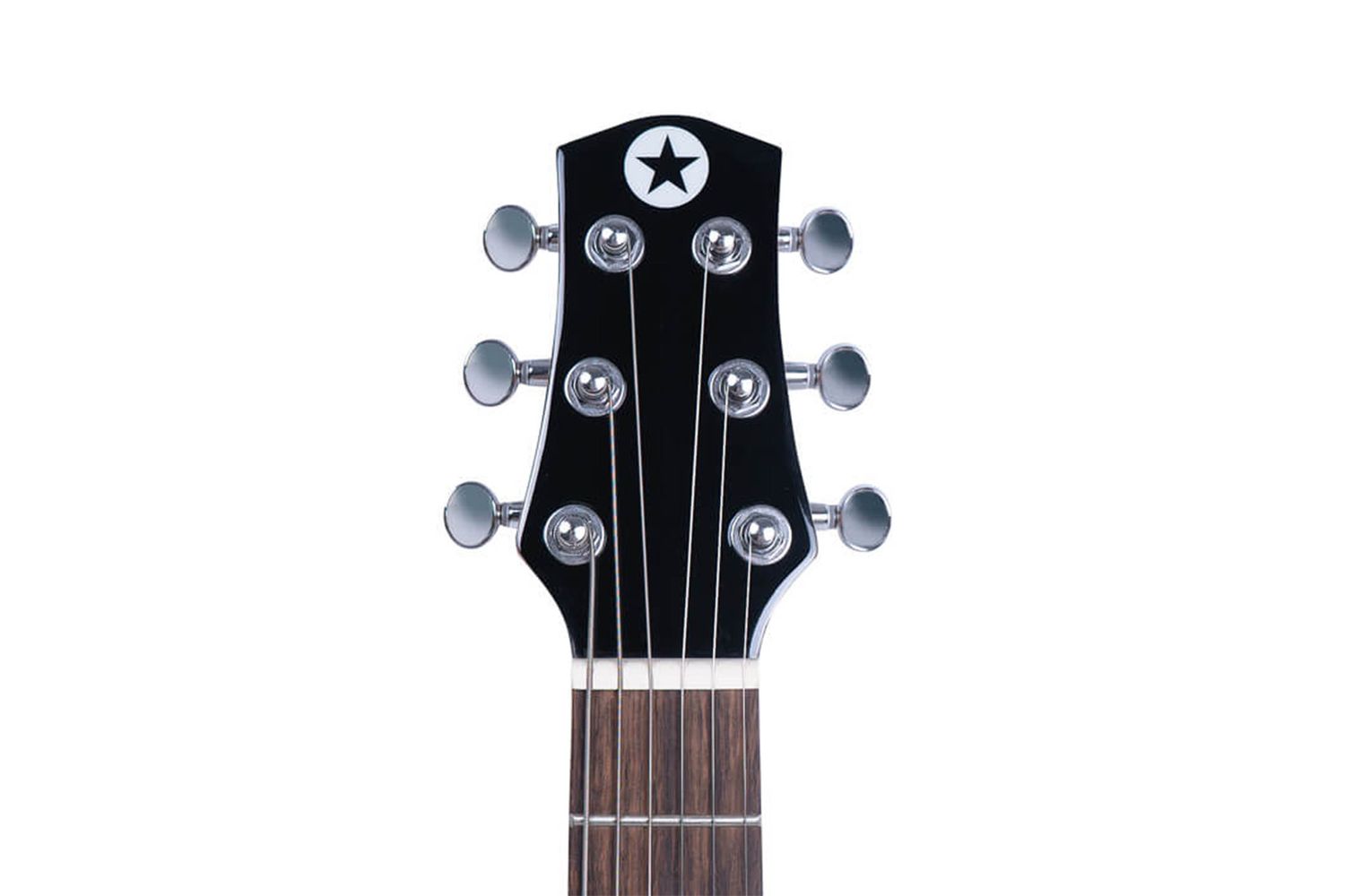 Fusing top-tier functionality with sleek aesthetics, this portable electric guitar stands out with its St Black colour and Gloss finish. Equipped with mini-humbucker pickups, 1:14 gear ratio sealed machine heads, and a funcióned TOM style bridge, it ensures professional sound with uncompromising tonal quality and durability.