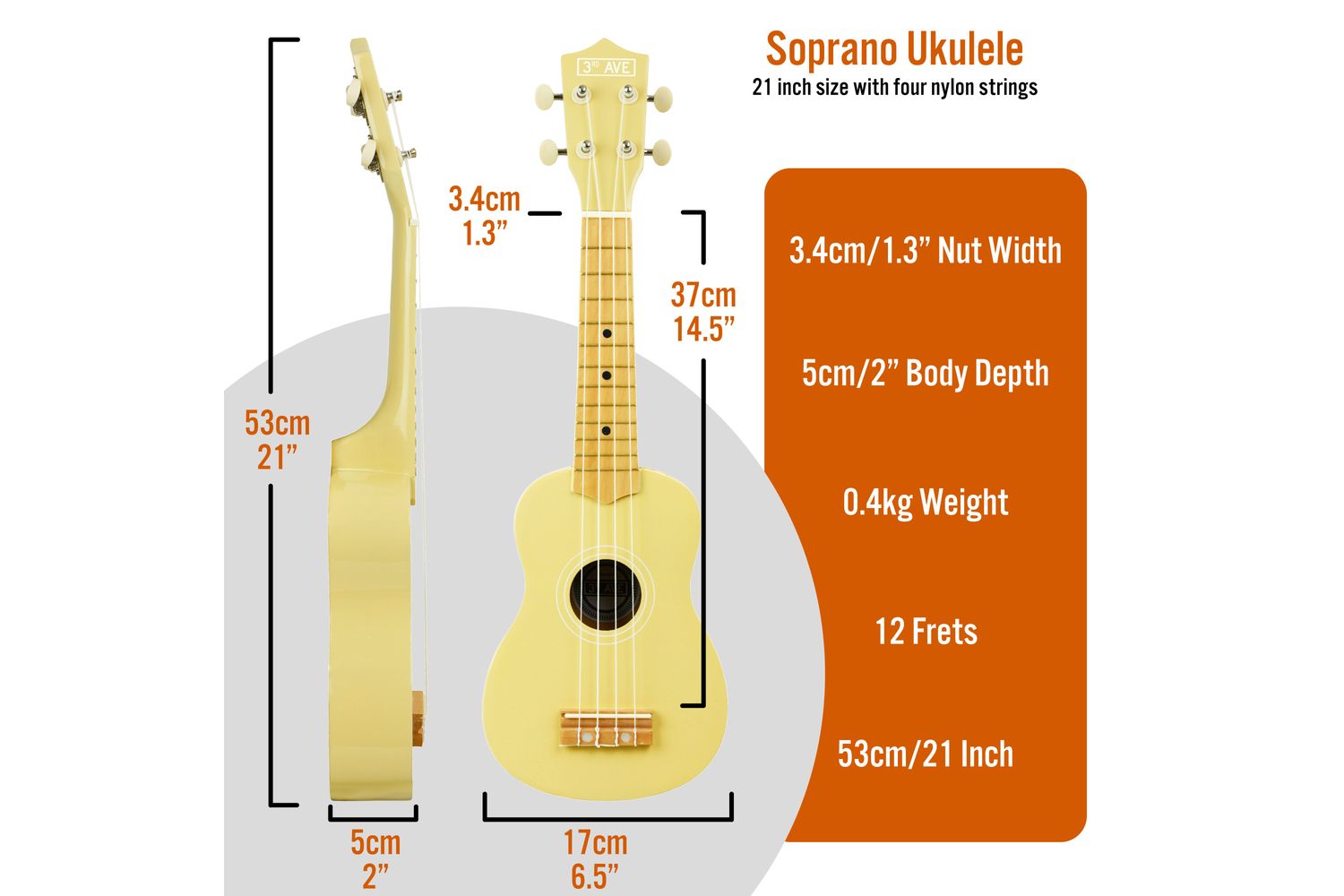 Unleash your inner creative vibe with our vibrant and beginner-friendly 3rd Avenue Soprano Ukulele in Pastel Yellow. Artfully crafted by leading musical instrument brand 3RD AVENUE, this attractive instruments belongs to the MUSIC AND SOUND category, designed to foster a love for music and enrich your talent, making it the perfect match for creative souls and fledgling musicians.