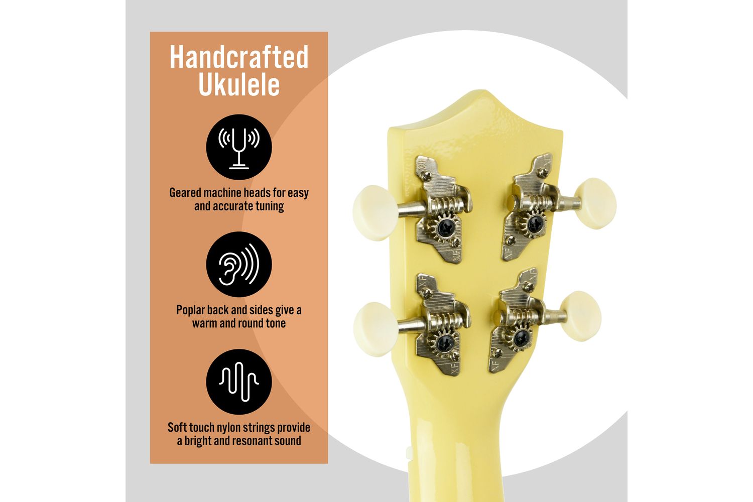 Apart from its enchanting aesthetics, the 3rd Avenue Soprano Ukulele comes equipped with geared tuners, set to ease your tuning process. Aiding in your musical quest for accurate notes and harmonious melodies, these tuners ensure your instrument remains in tune for longer periods.